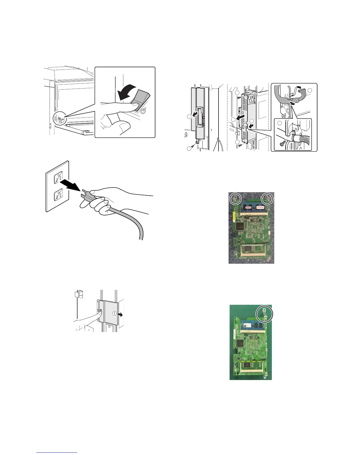 2) Use one of the fixing screw which were removed in the proce-