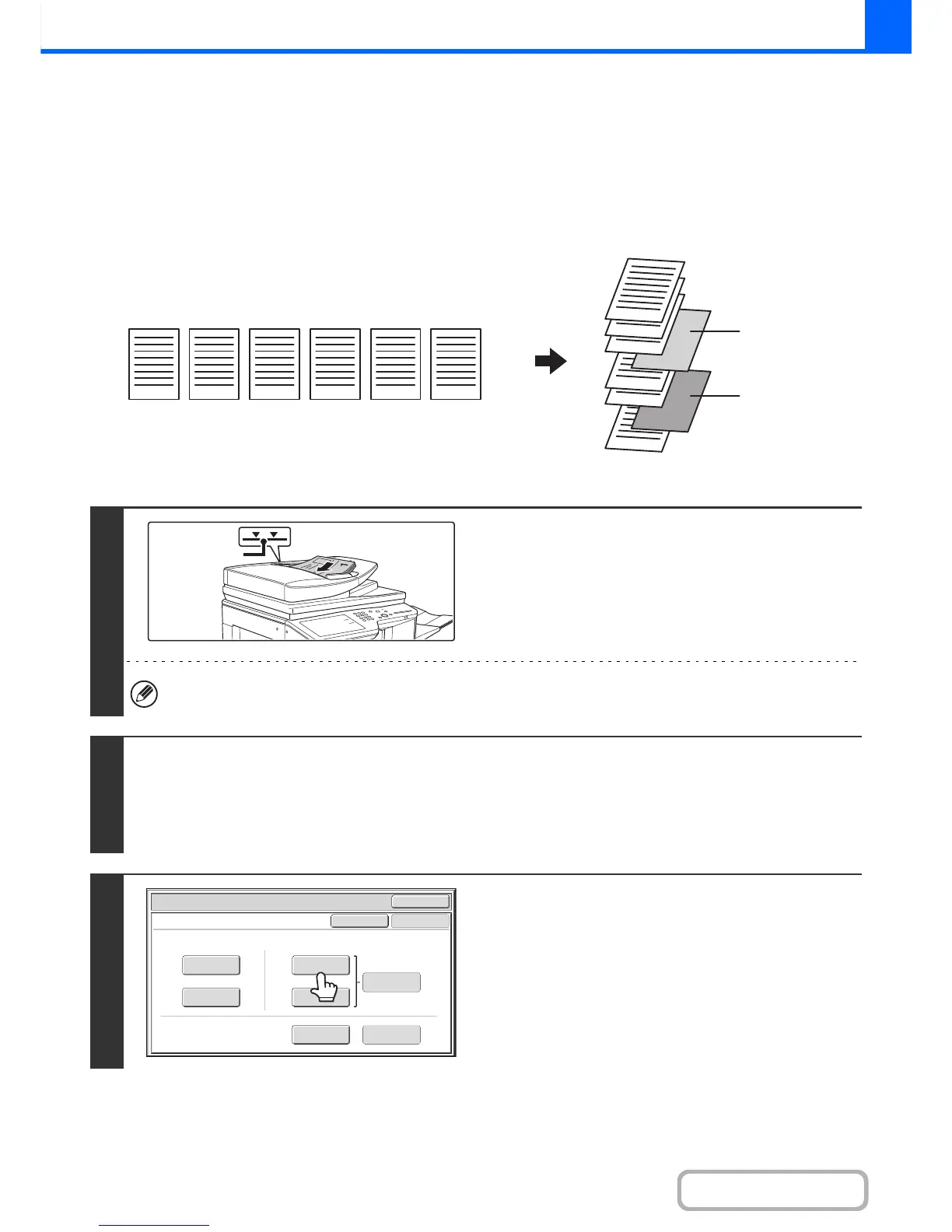 You can have different paper automatically inserted as inserts at specified pages of copies. Two types of paper can be