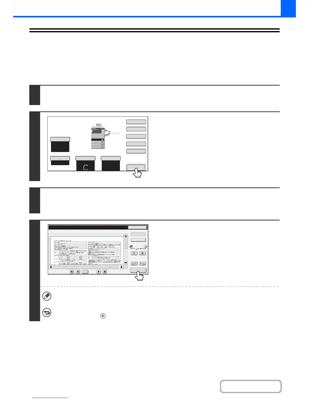 After the original is scanned, a preview image of the copy appears in the touch panel. The copy is not printed until the [Start