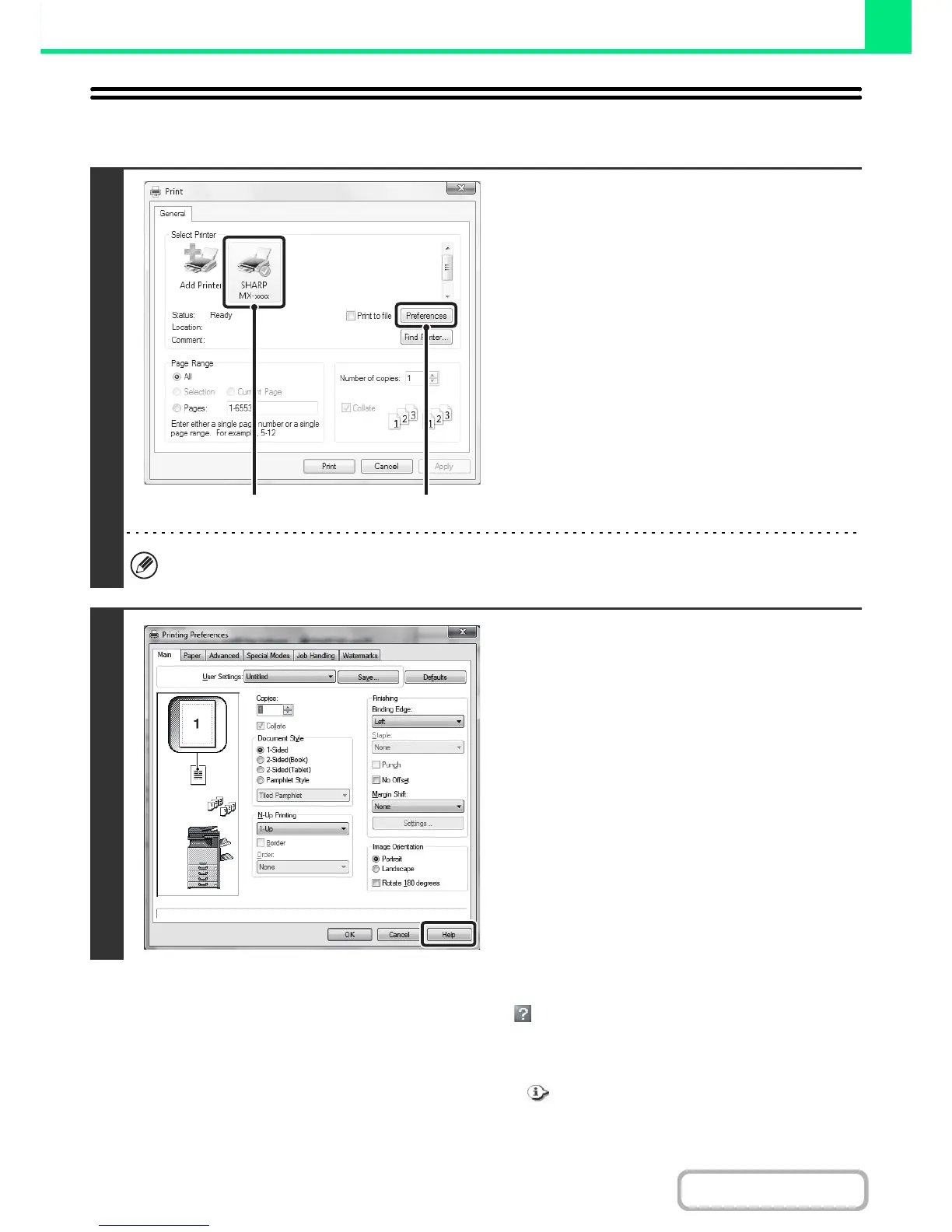 When selecting settings in the printer driver, you can display Help to view explanations of the settings.