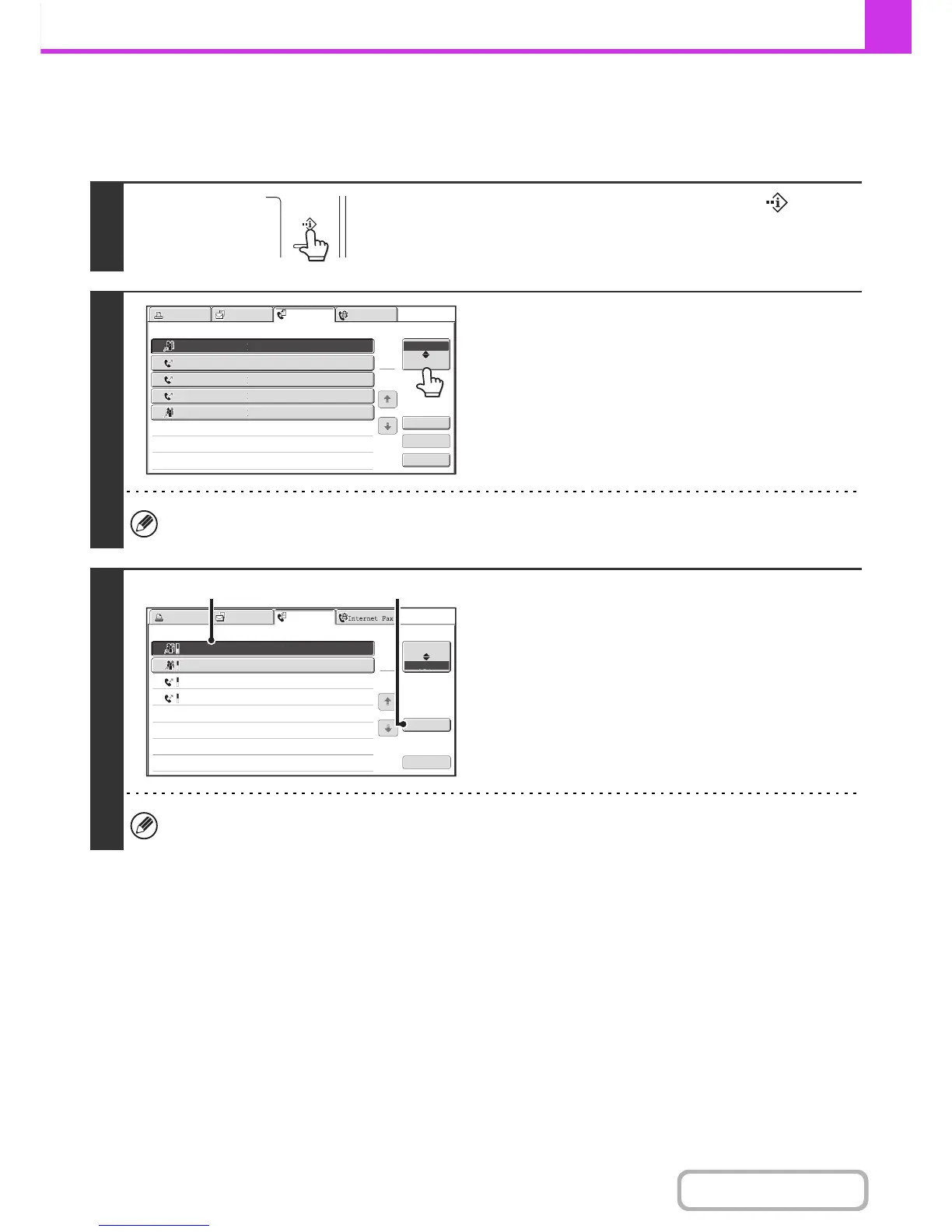 If the job status screen of fax mode does not appear, touch the