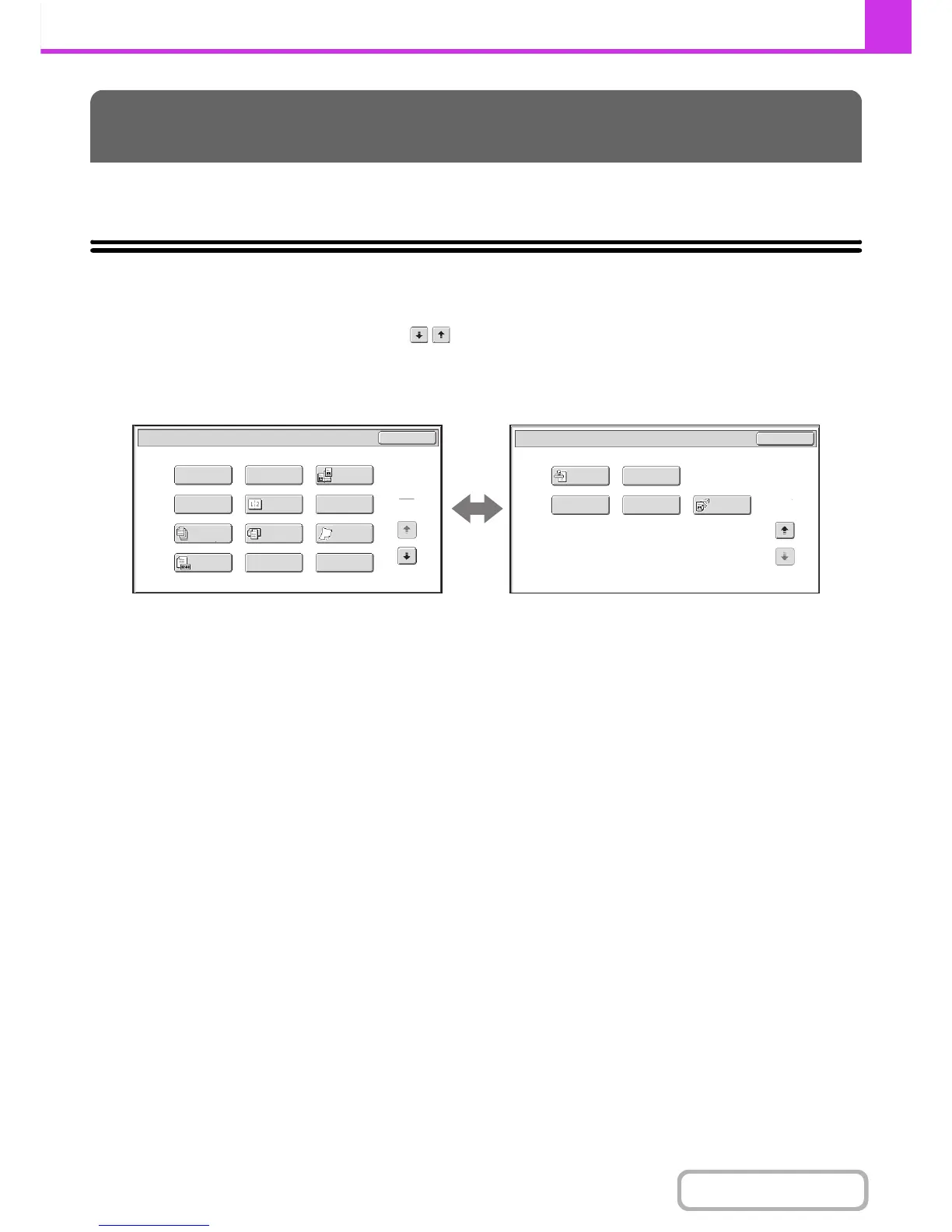modes menu consists of two screens. Touch the key to switch between the two screens. When the [OK] key is