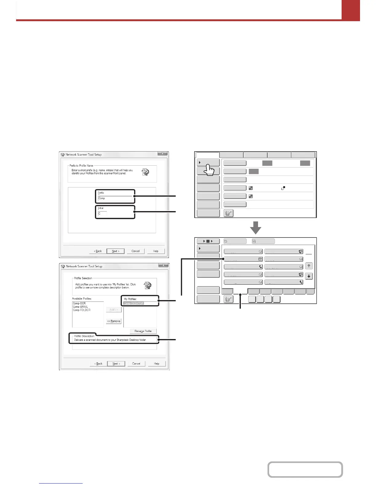 The following window appears while Network Scanner Tool is being set up. The item selected in "My Profiles" (C) will be