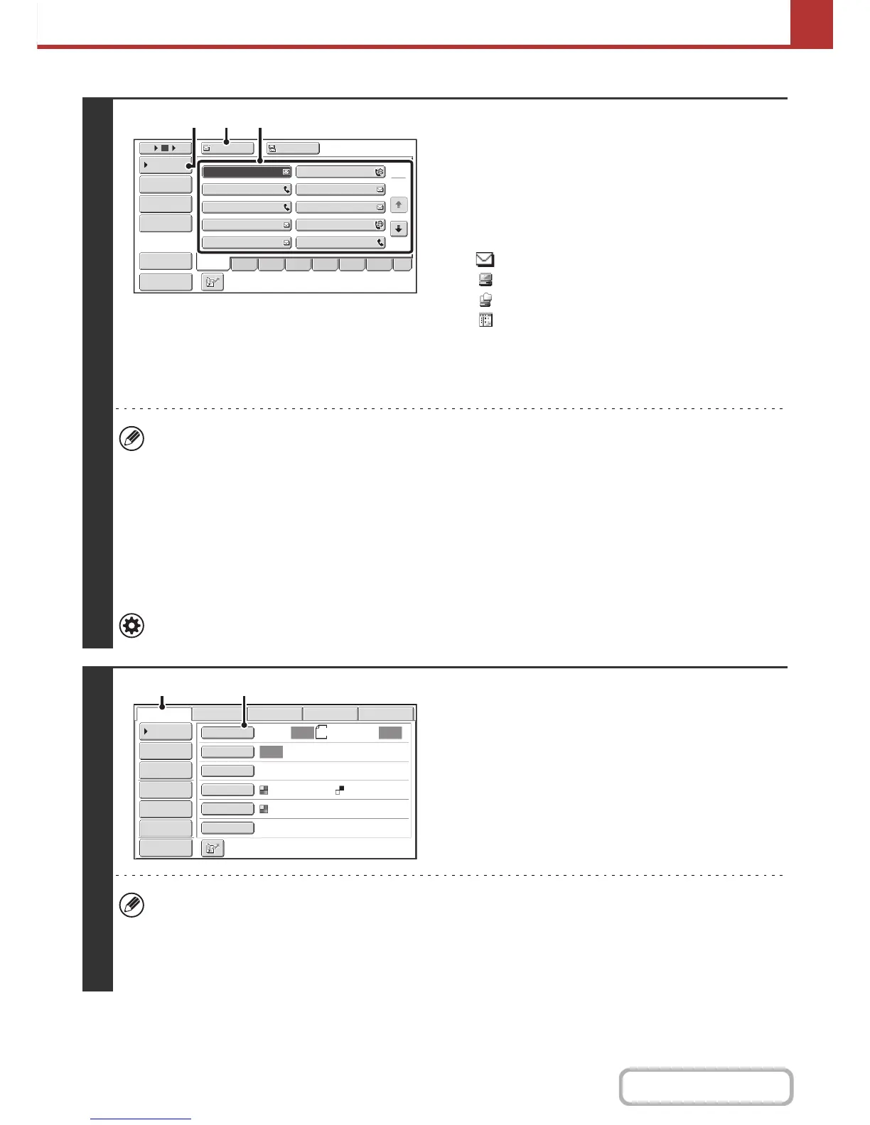 • When performing Scan to E-mail, you can also send Cc or Bcc copies to other destinations. Touch the desired