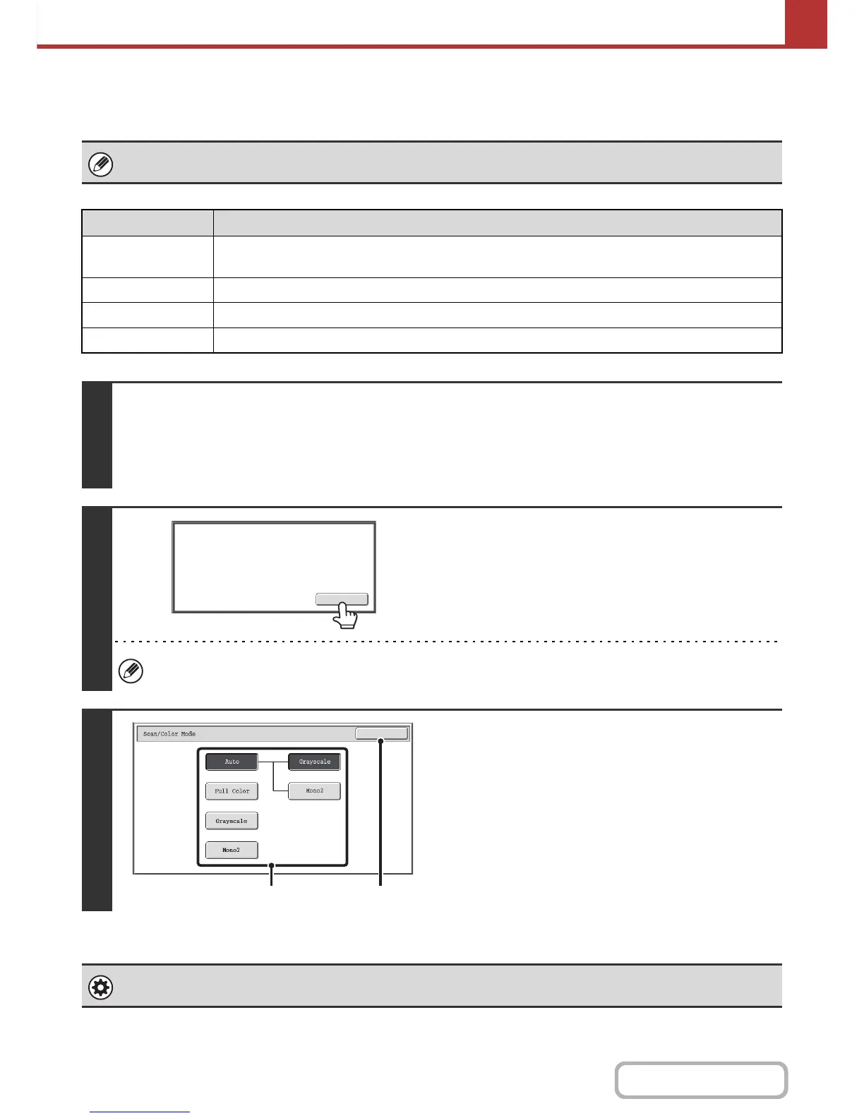 This procedure is used to change the color mode used to scan the original when the [START] key is pressed.