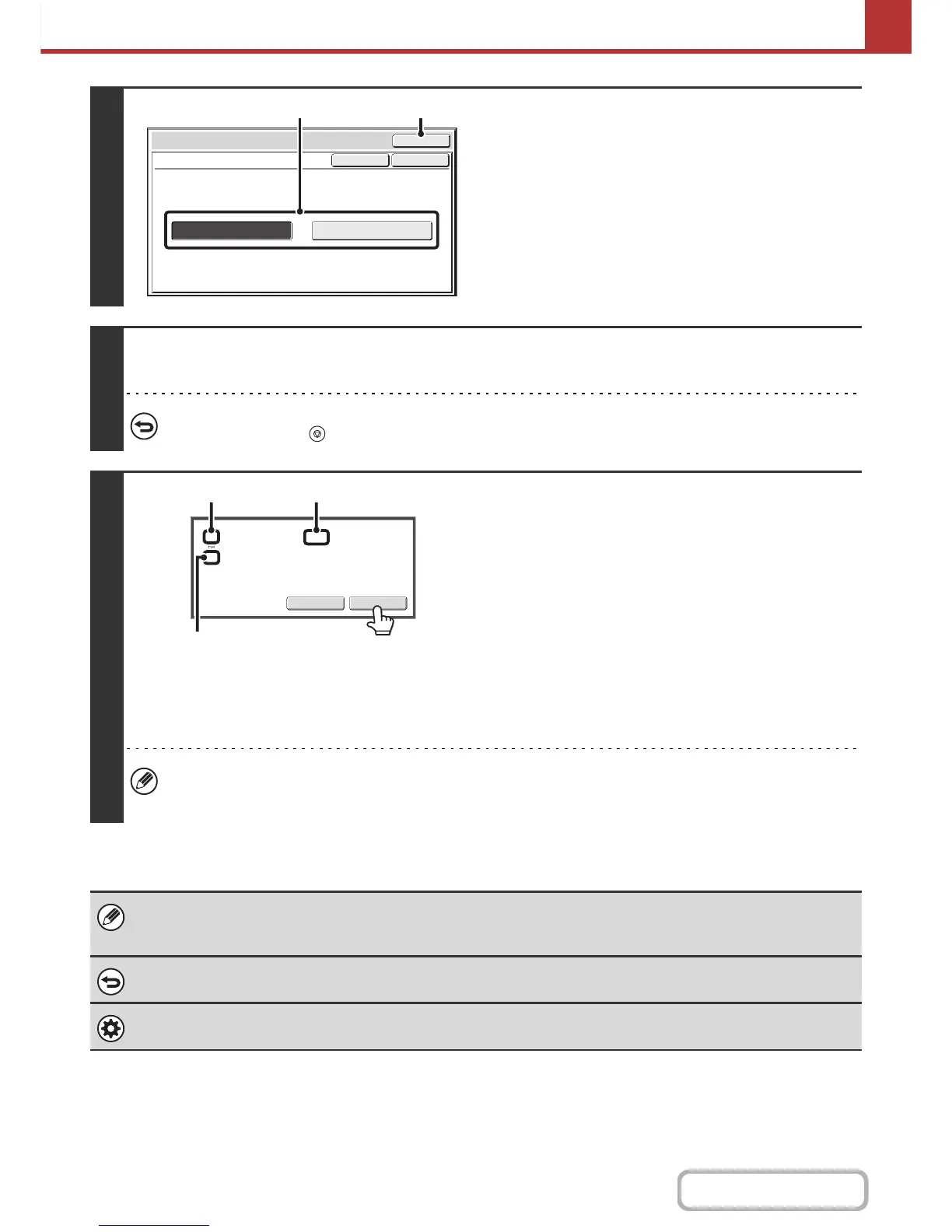Touch the [Cancel] key in the screen of step 4 so that it is no longer highlighted.