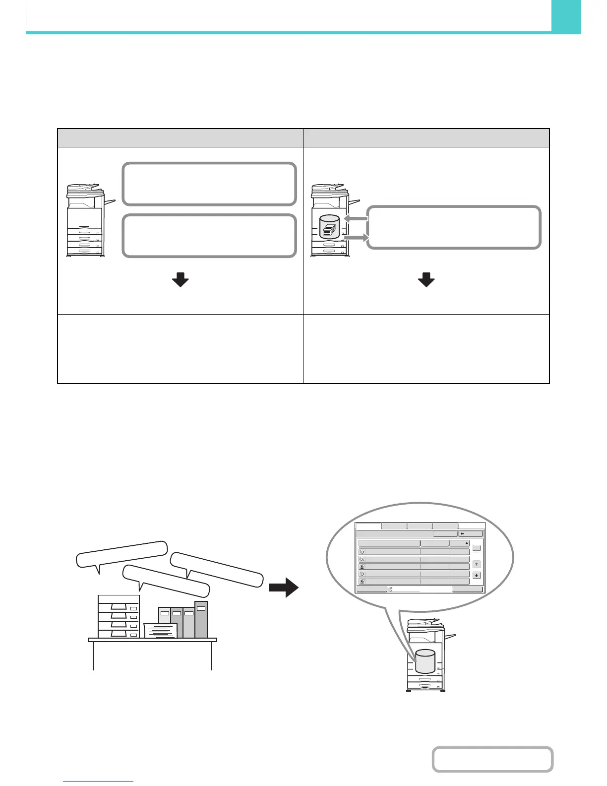 As shown in the example, storing a job with the document filing function frees you of the need to rescan the original and