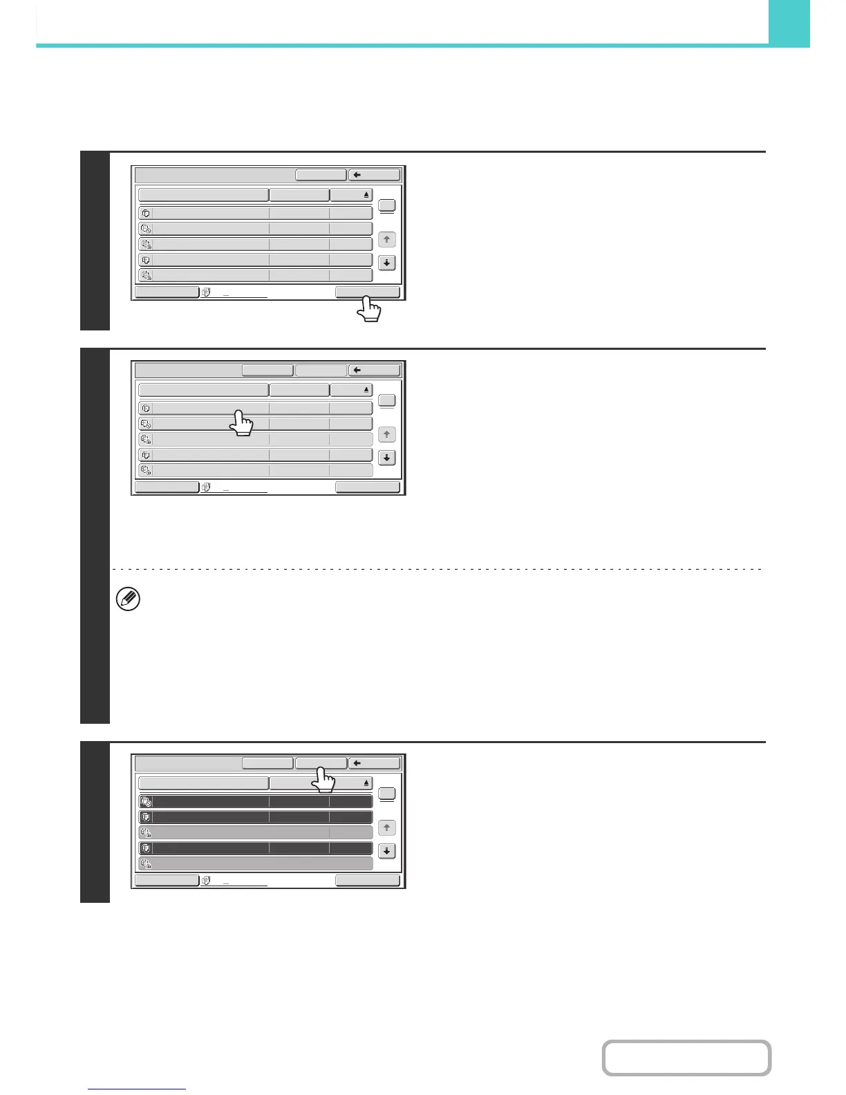 • When the [Select All] key is touched, it will change into the [Cancel All] key. To cancel the selection of all files that