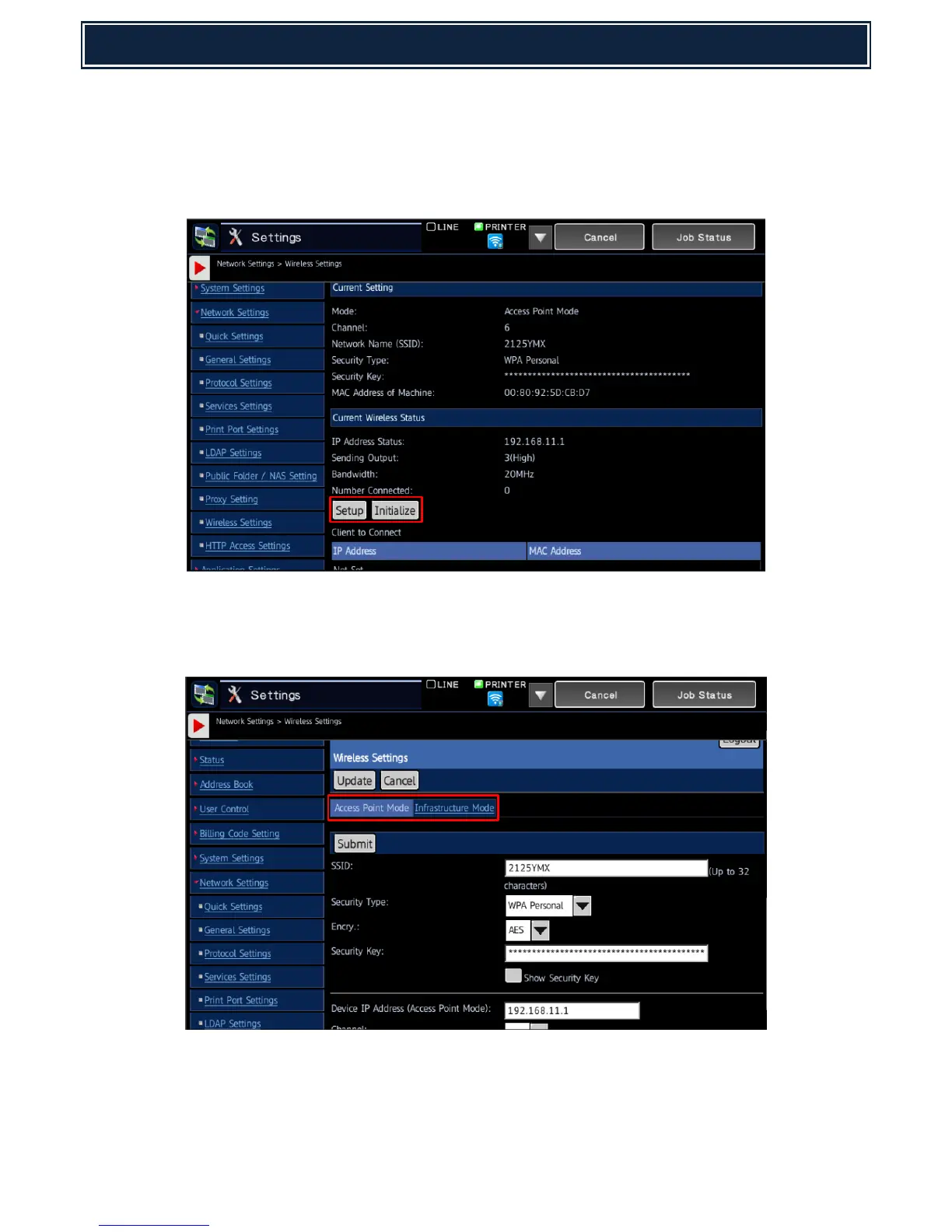 Note: To return the Wireless Settings back to factory default (prior to setup), select Initialize.