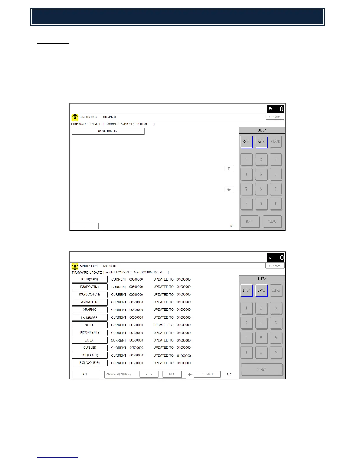 5. Select the required firmware that requires updating - Press Execute & Yes to commence the