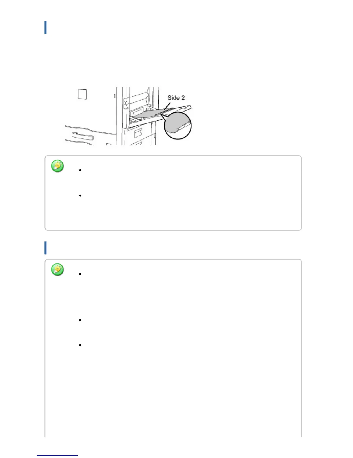 To print on tab paper, load tab paper into the bypass tray with the print side