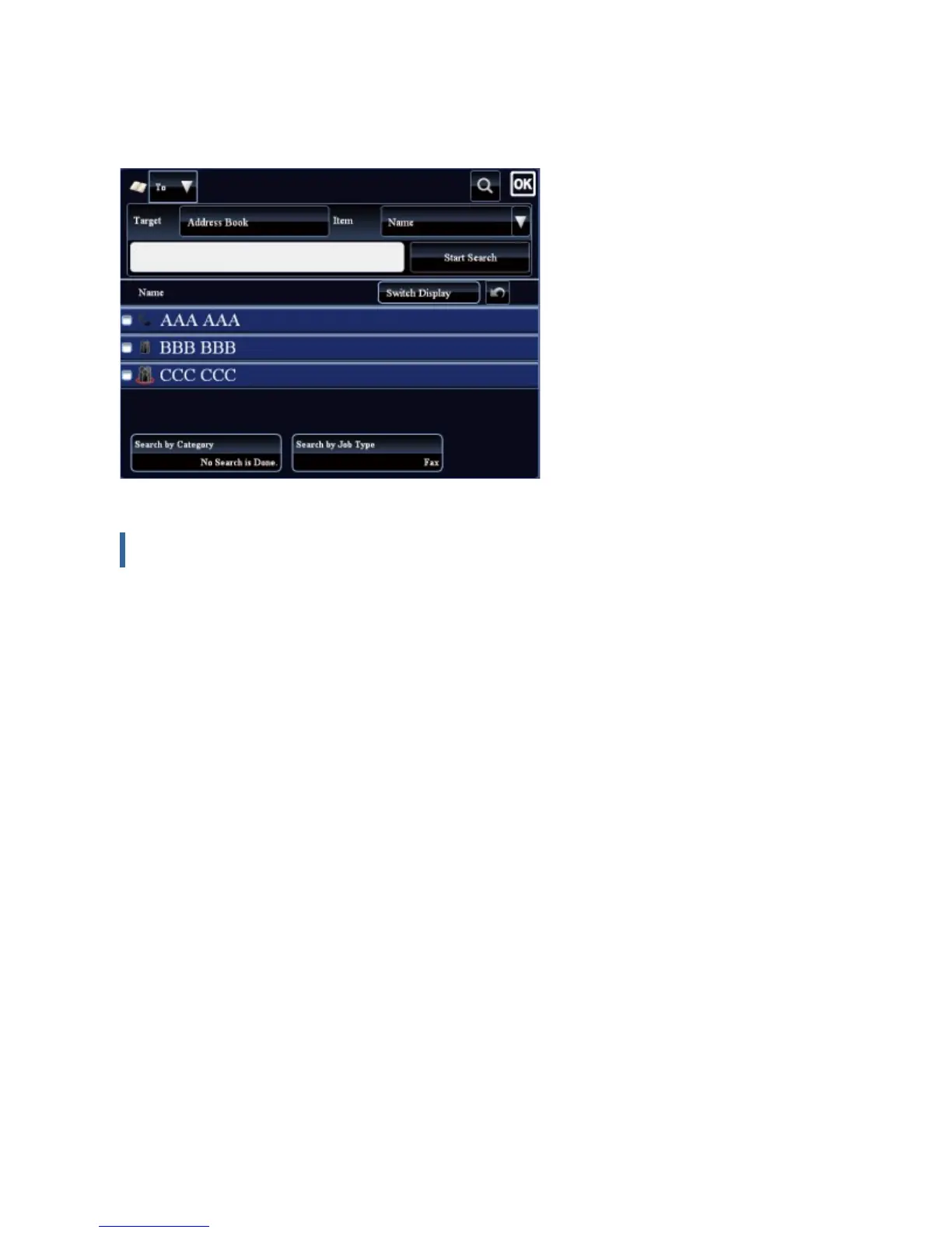 Tapping the [Switch Display] key displays a list in ascending order, descending order, or in