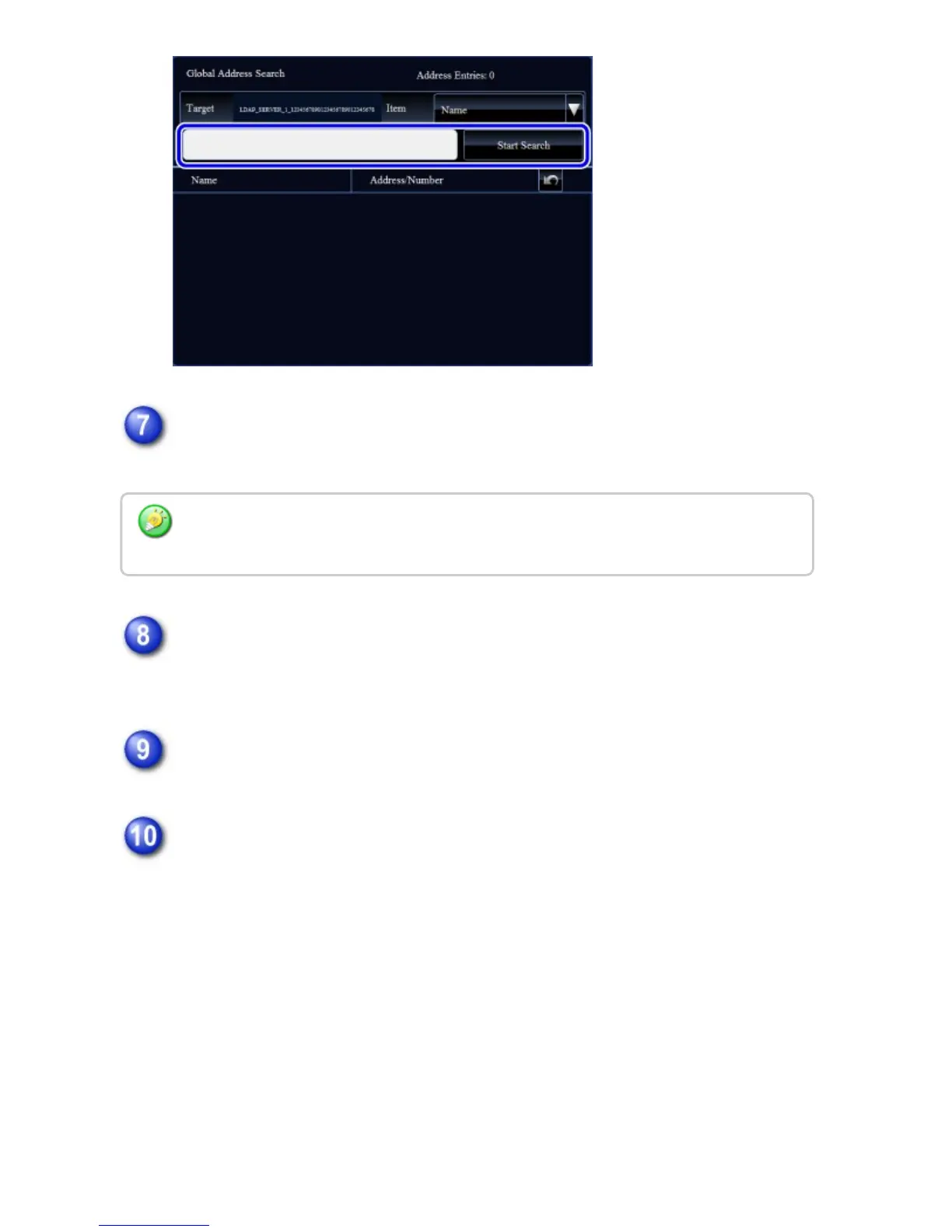 Select one address from the search result list and tap the [Enter] key on the