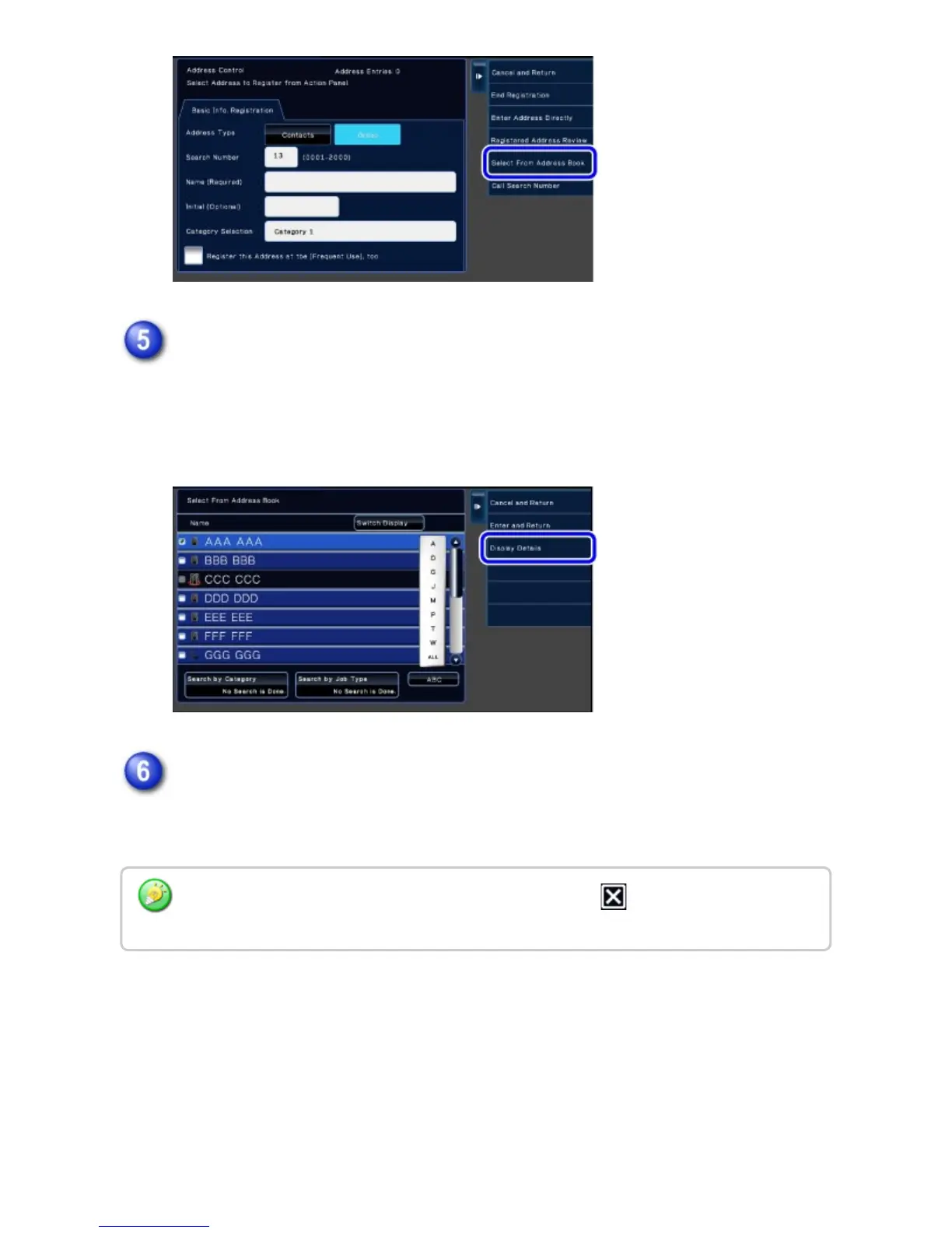 and then tap the [Display Details] key on the action panel.