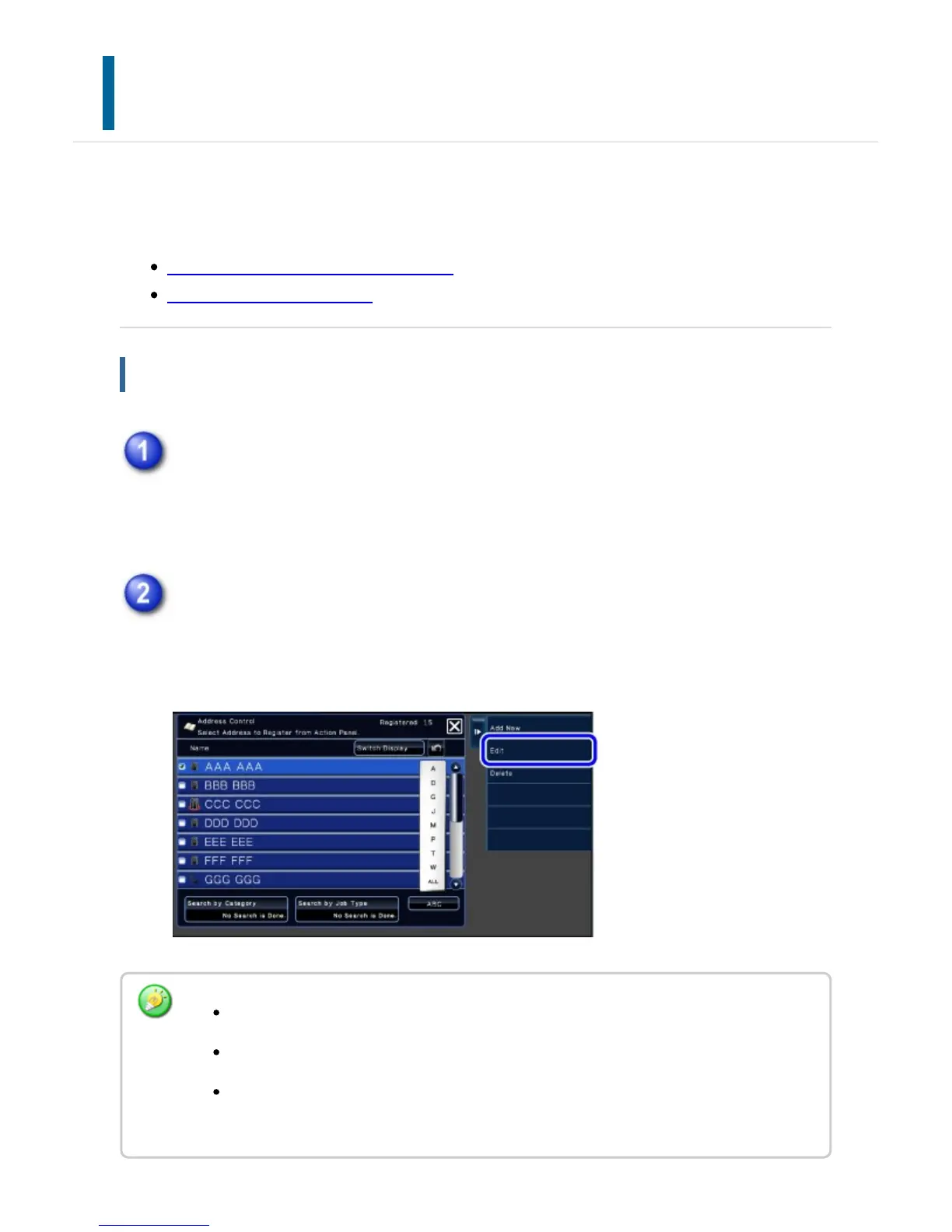 You can edit or delete "Contacts" or "Group" information stored in the address book as