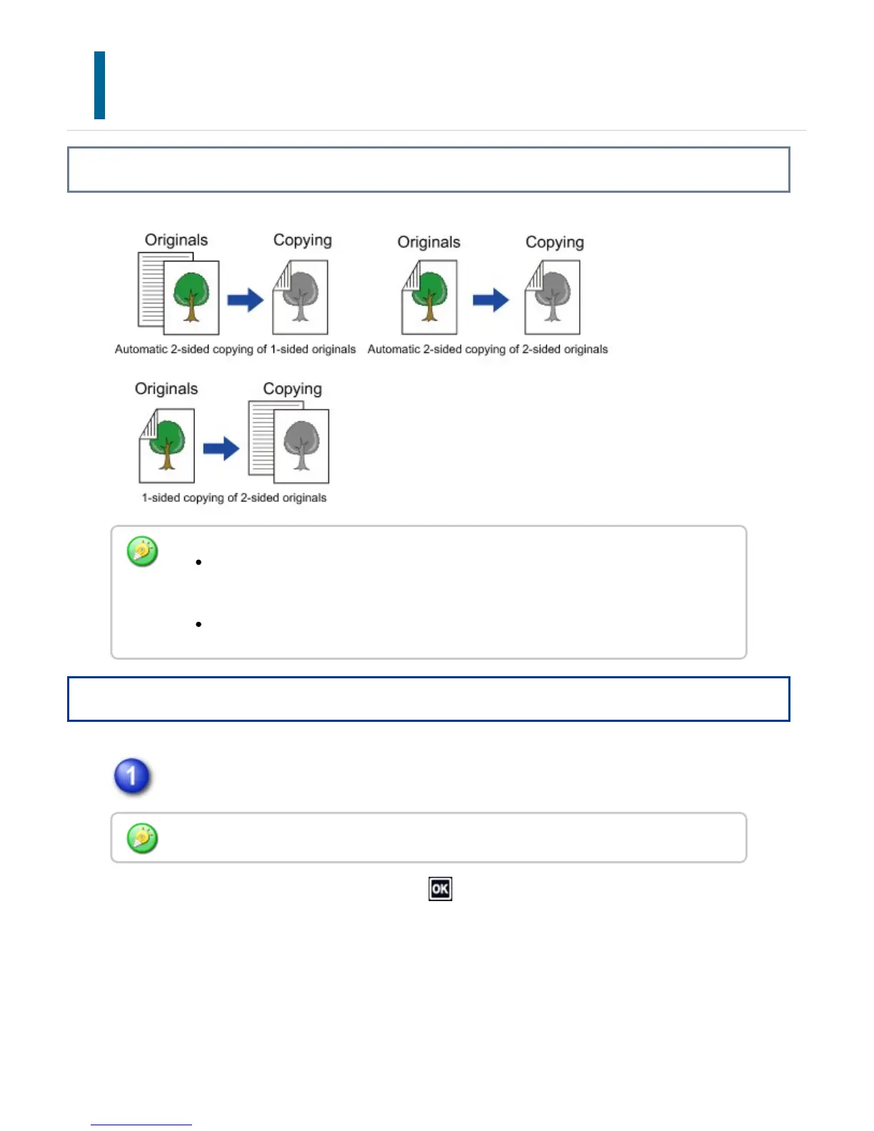 To make 2-sided copies, configure the 2-sided copy settings before scanning the original.