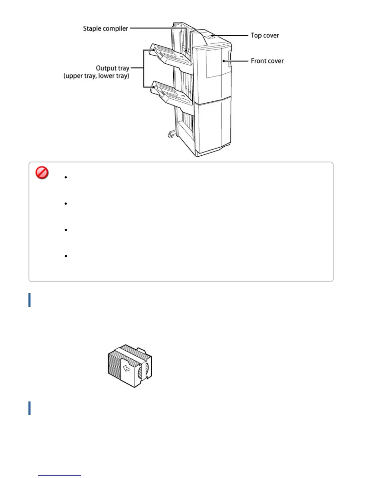 Do not place heavy objects on the finisher (large stacker) or press down on the finisher (large