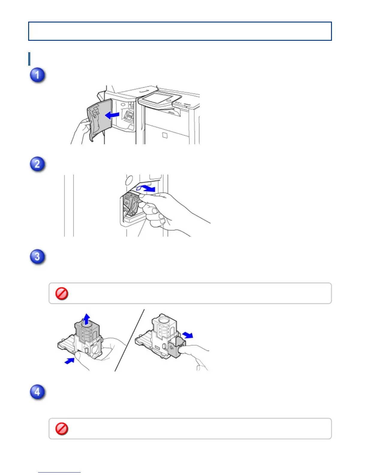 Press the lock button to release the staple case cover and then remove the staple cartridge.