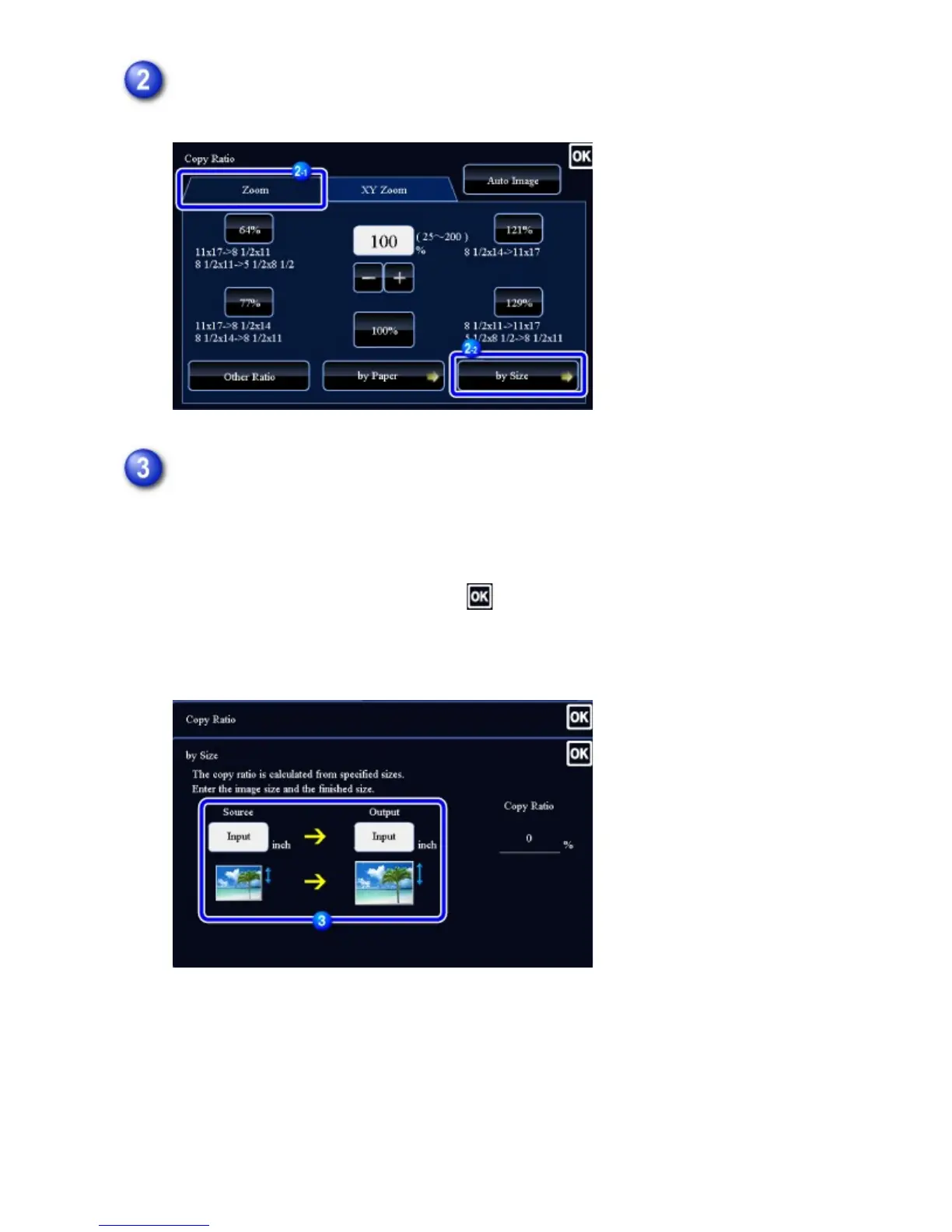 Tap the area of image size and output size, and enter the sizes using the numeric