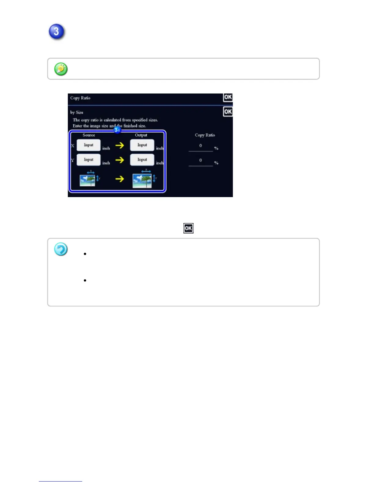 Tap the area of image size and output size, and enter the sizes using the numeric keys.
