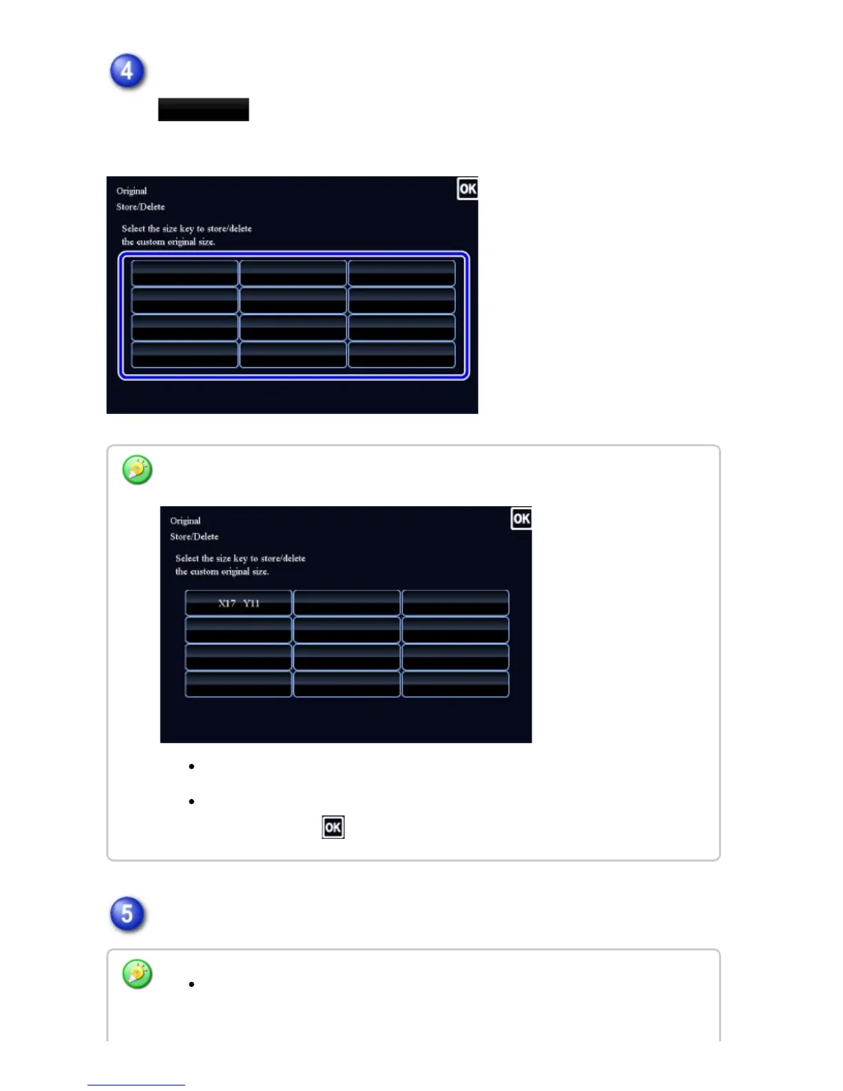 To clear the key, tap the [Delete] key. Make sure that the original size has been
