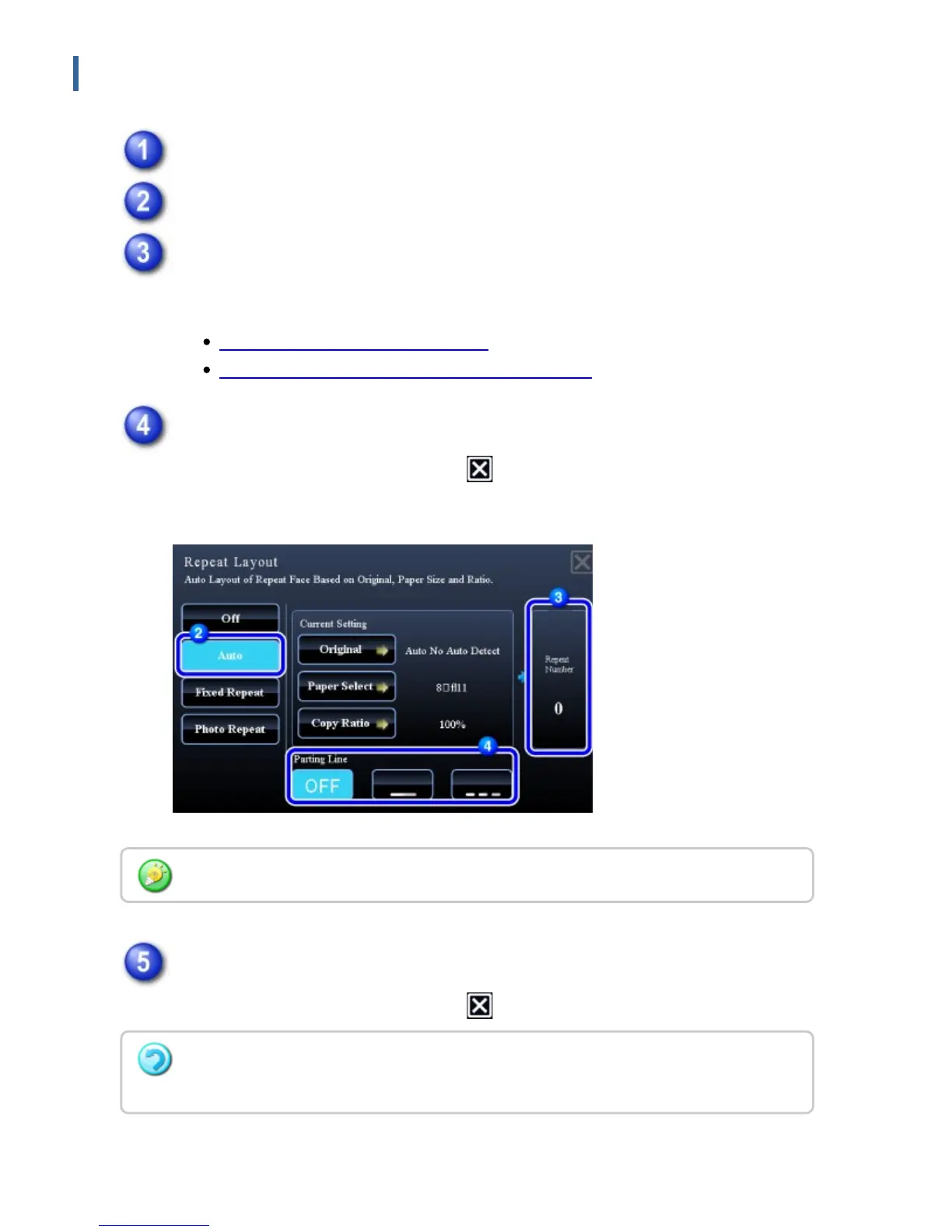 Tap the [Others] key, and then tap the [Repeat Layout] key.