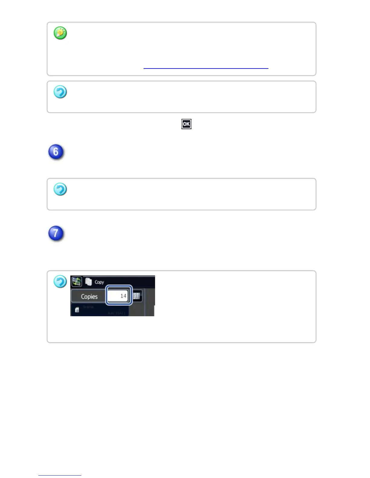Tap the copies display key to specify the number of copies.