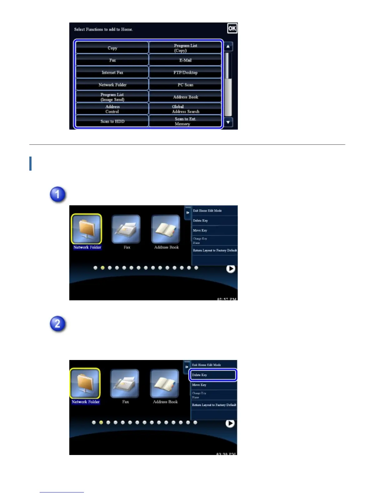 Tap the [Delete Key] key on the action panel.