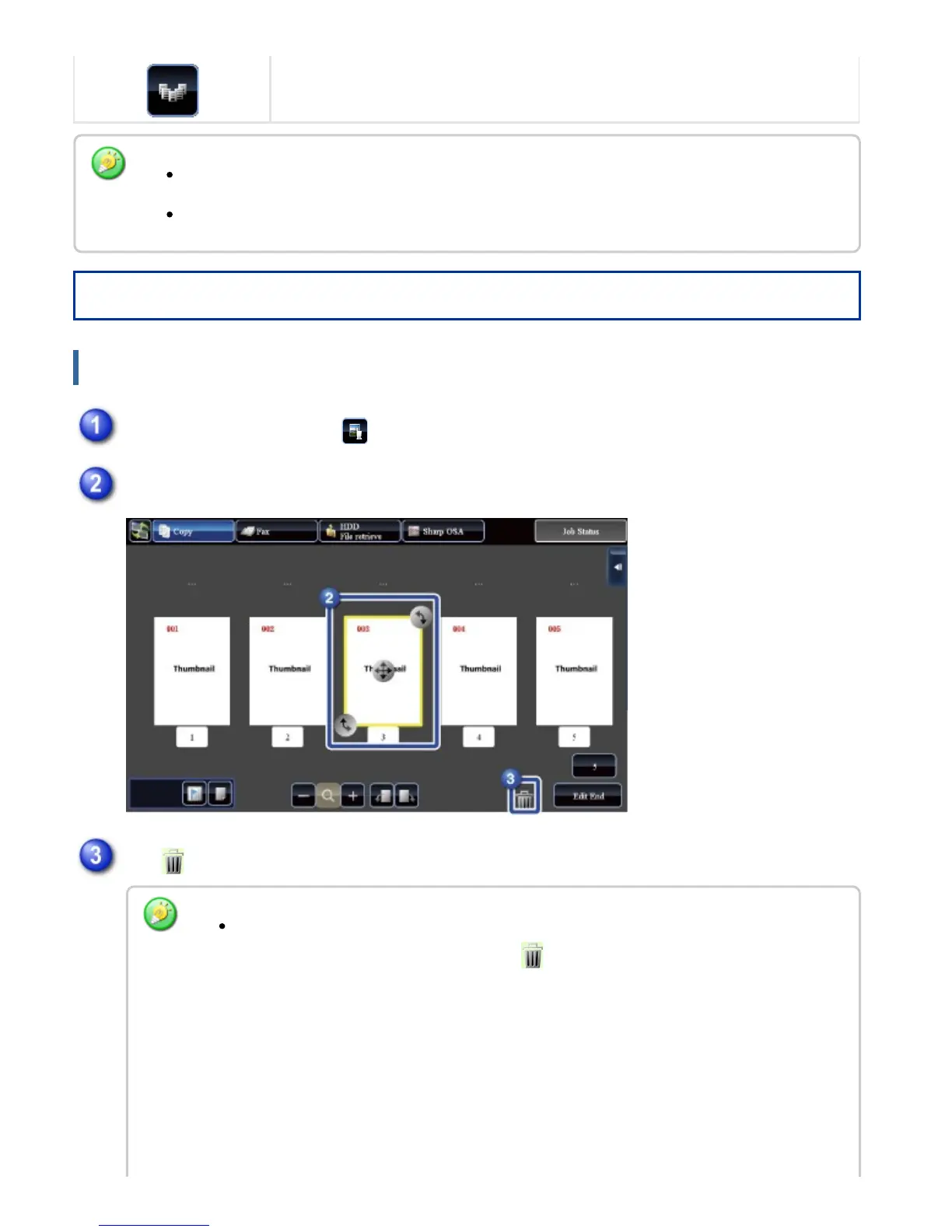 You can also delete the page by tapping the [Delete the Page] key on the action panel.
