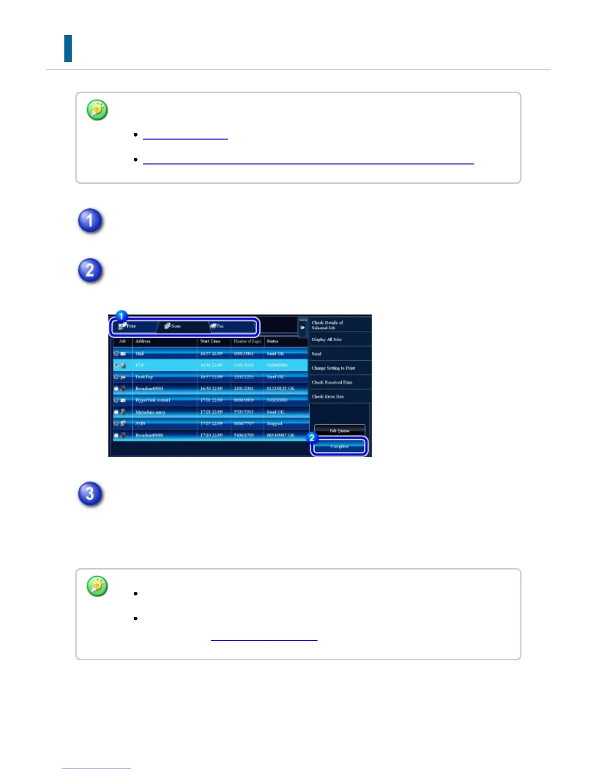 Tap the job whose contents you wish to check and then tap the [Check Details