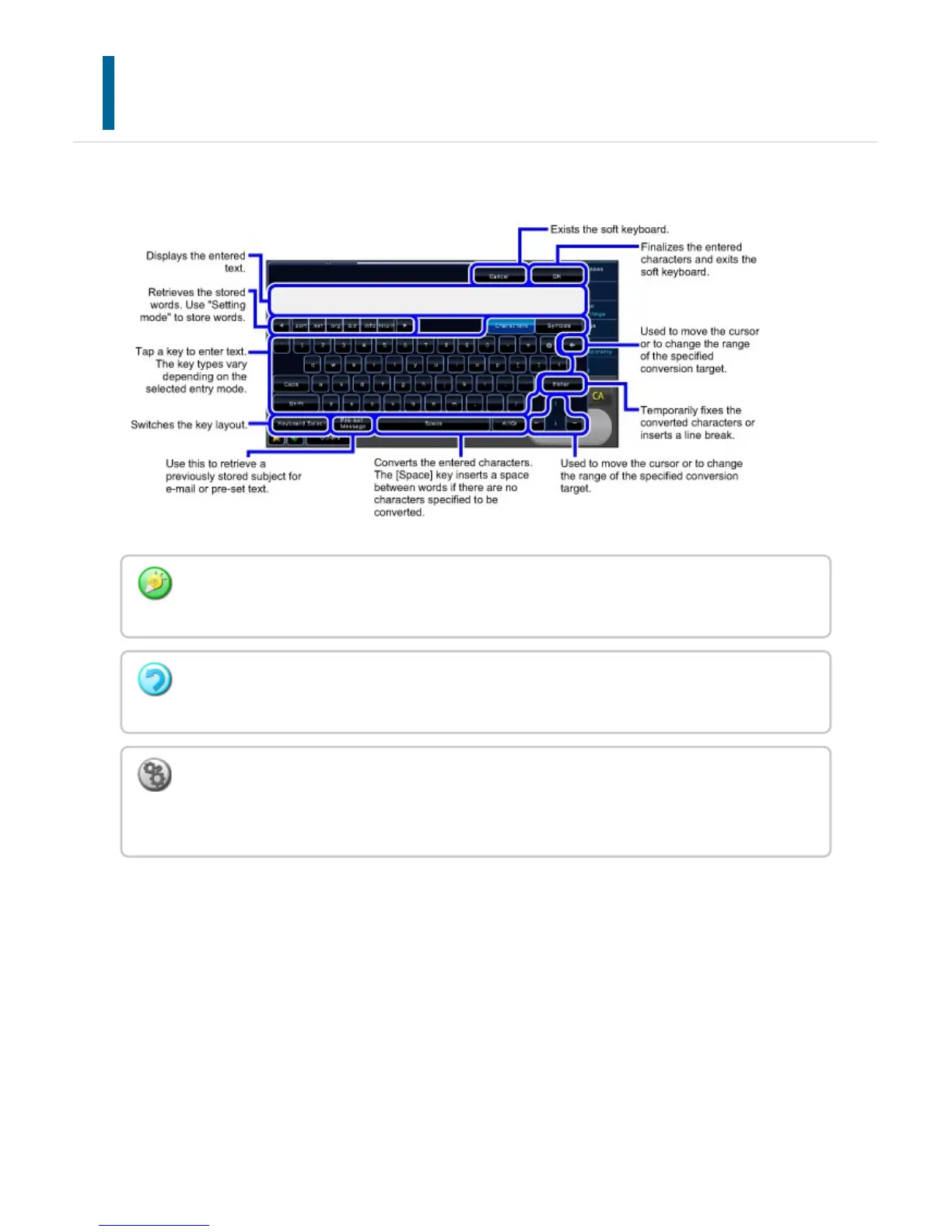 The soft keyboard shown here is an image for your reference. Different keys may be enabled
