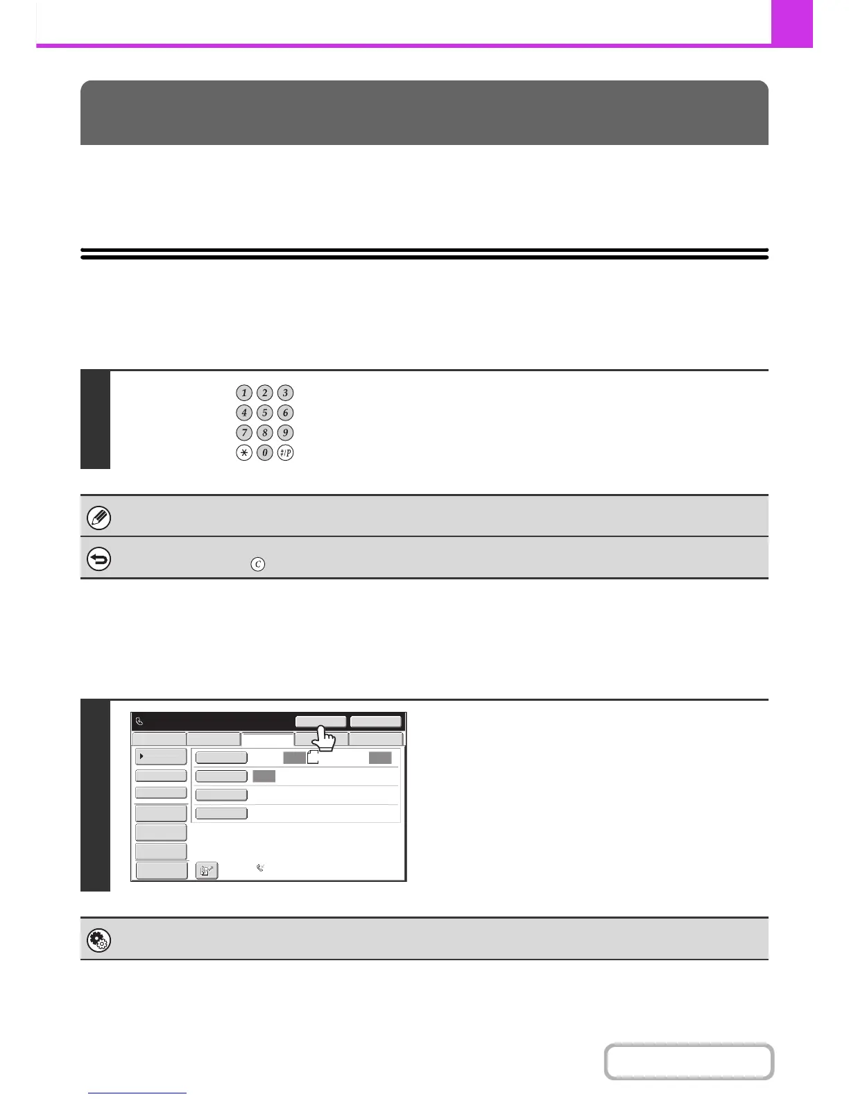This section explains how to enter destination fax numbers.