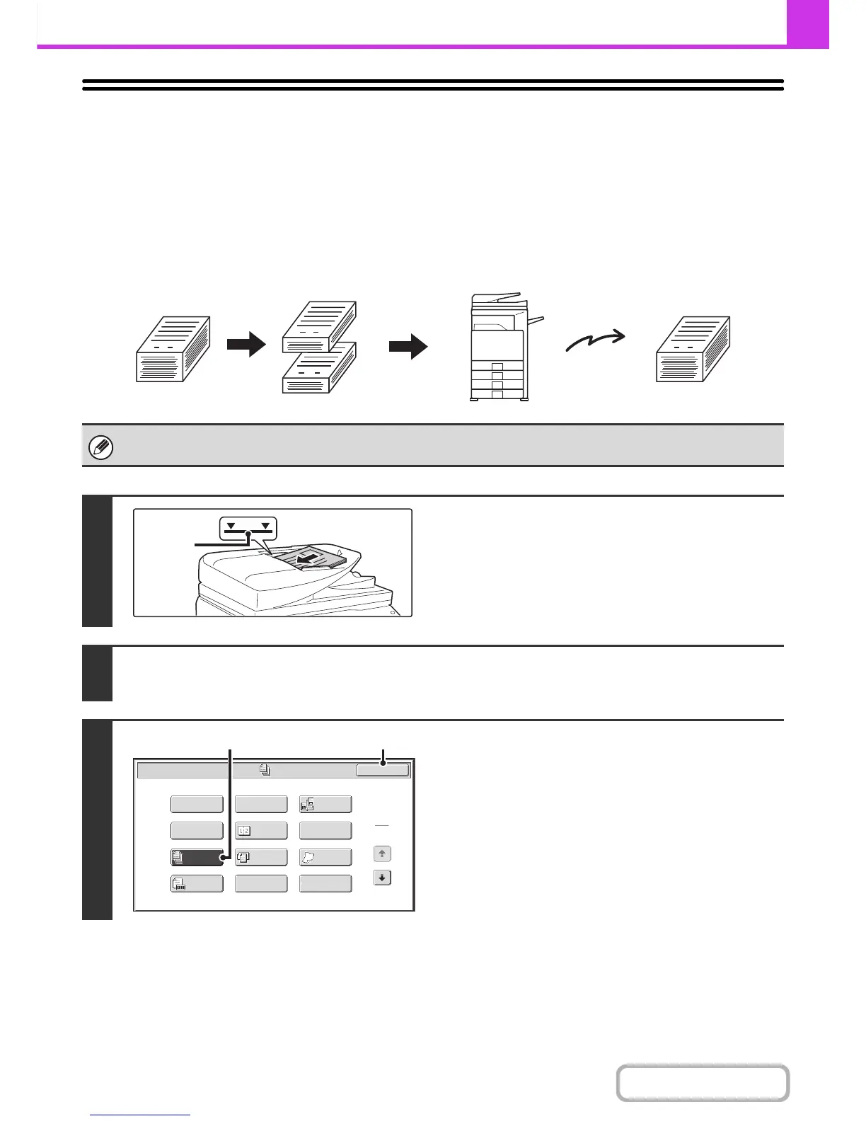 This function lets you separate an original consisting of numerous pages into sets, scan each set using the automatic
