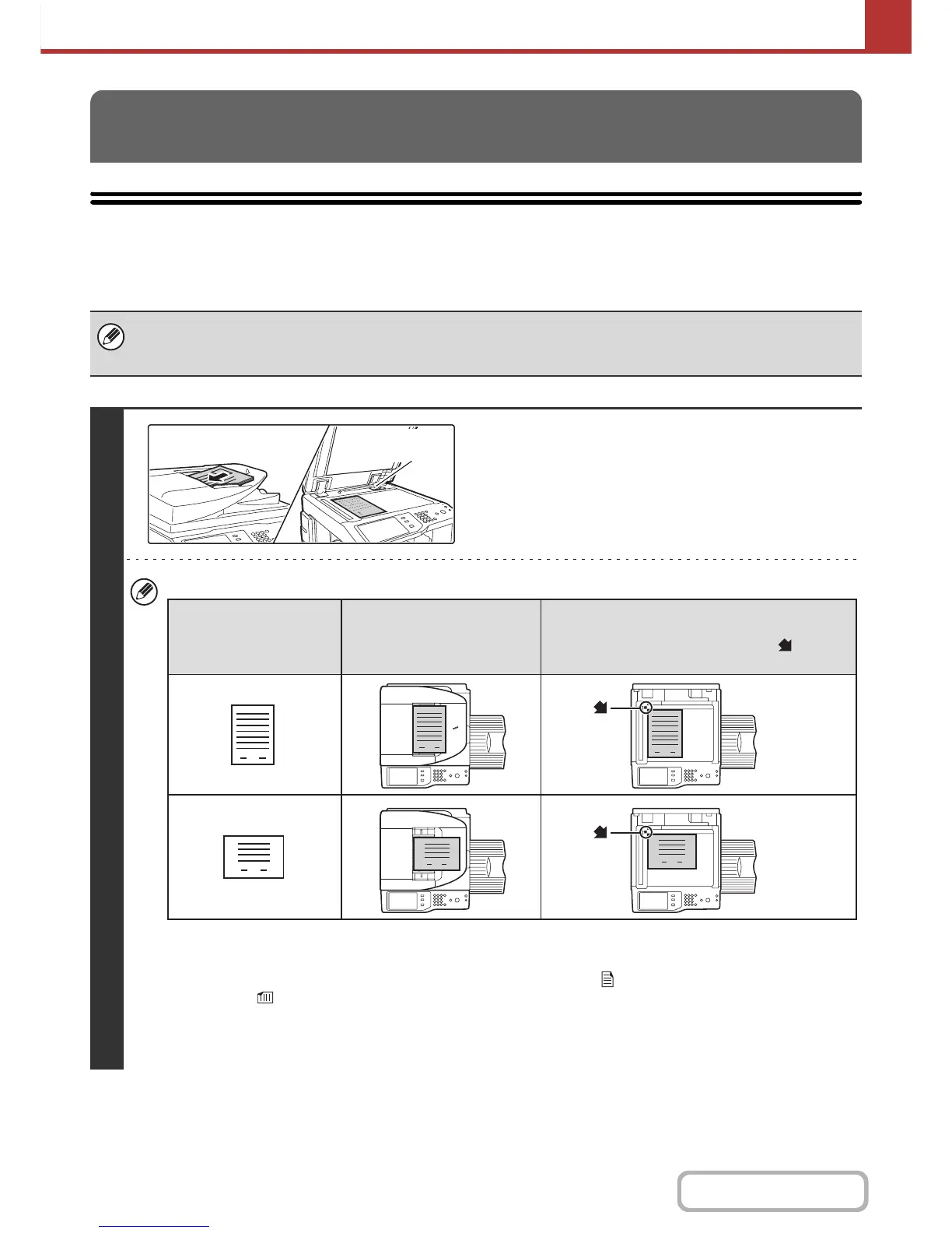 • Place 5-1/2" x 8-1/2" (A5) size originals in portrait (vertical) orientation ( ). If placed in landscape (horizontal)