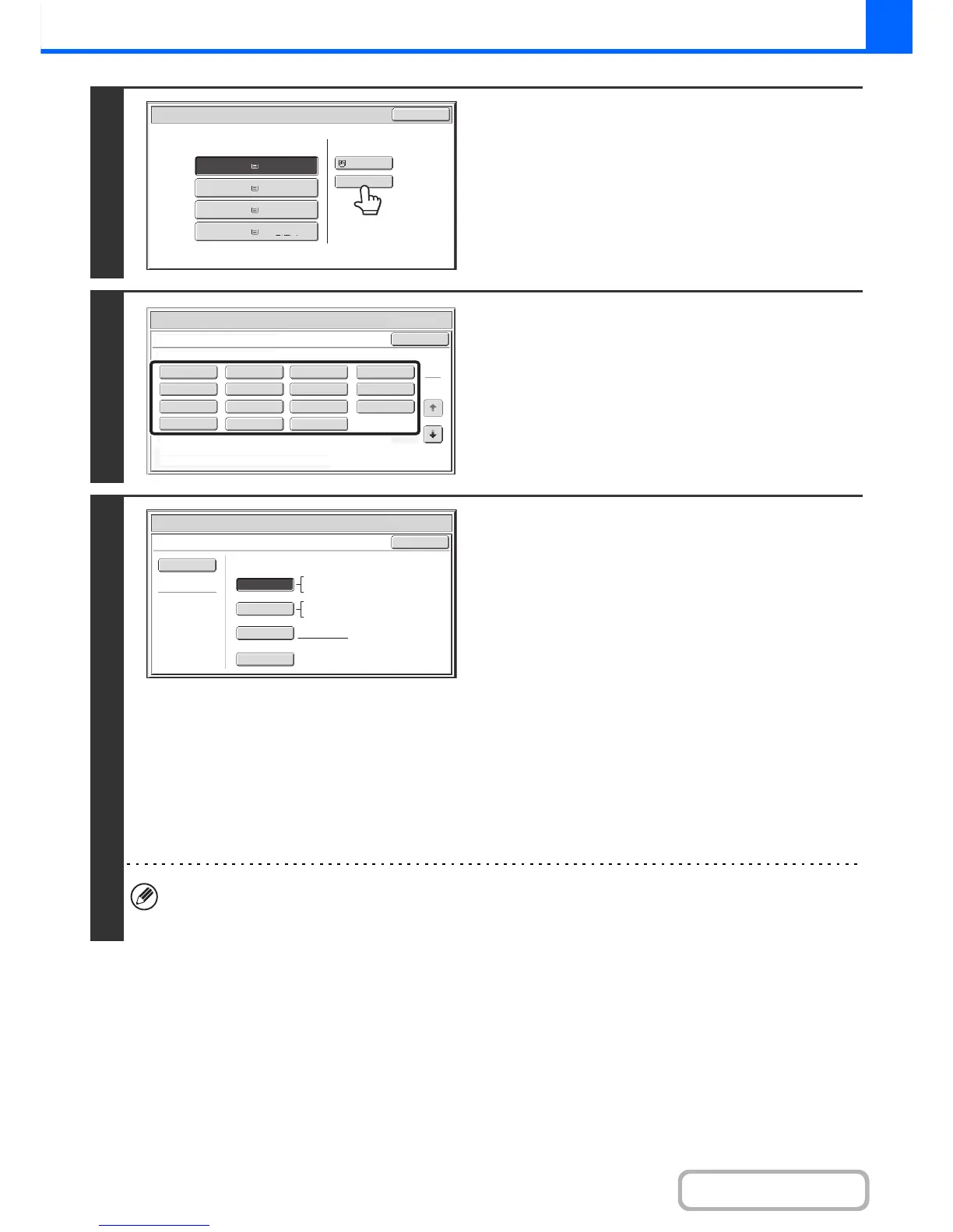 • If tab paper is selected, check the size. Touch the [Auto-Inch] key or the [Auto-AB] key. When you have finished