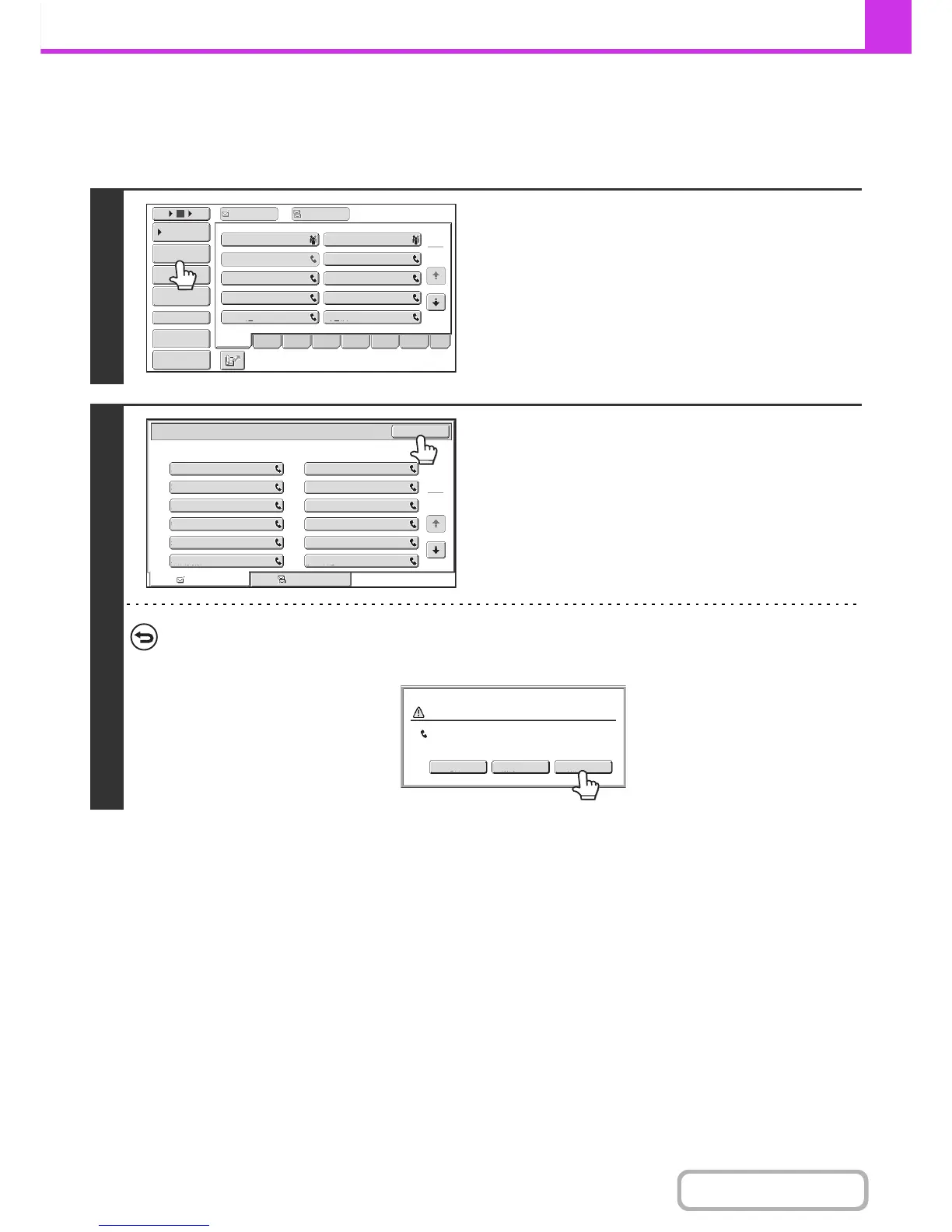Touch the one-touch key of the destination that you wish to delete. A message will appear to confirm the deletion.
