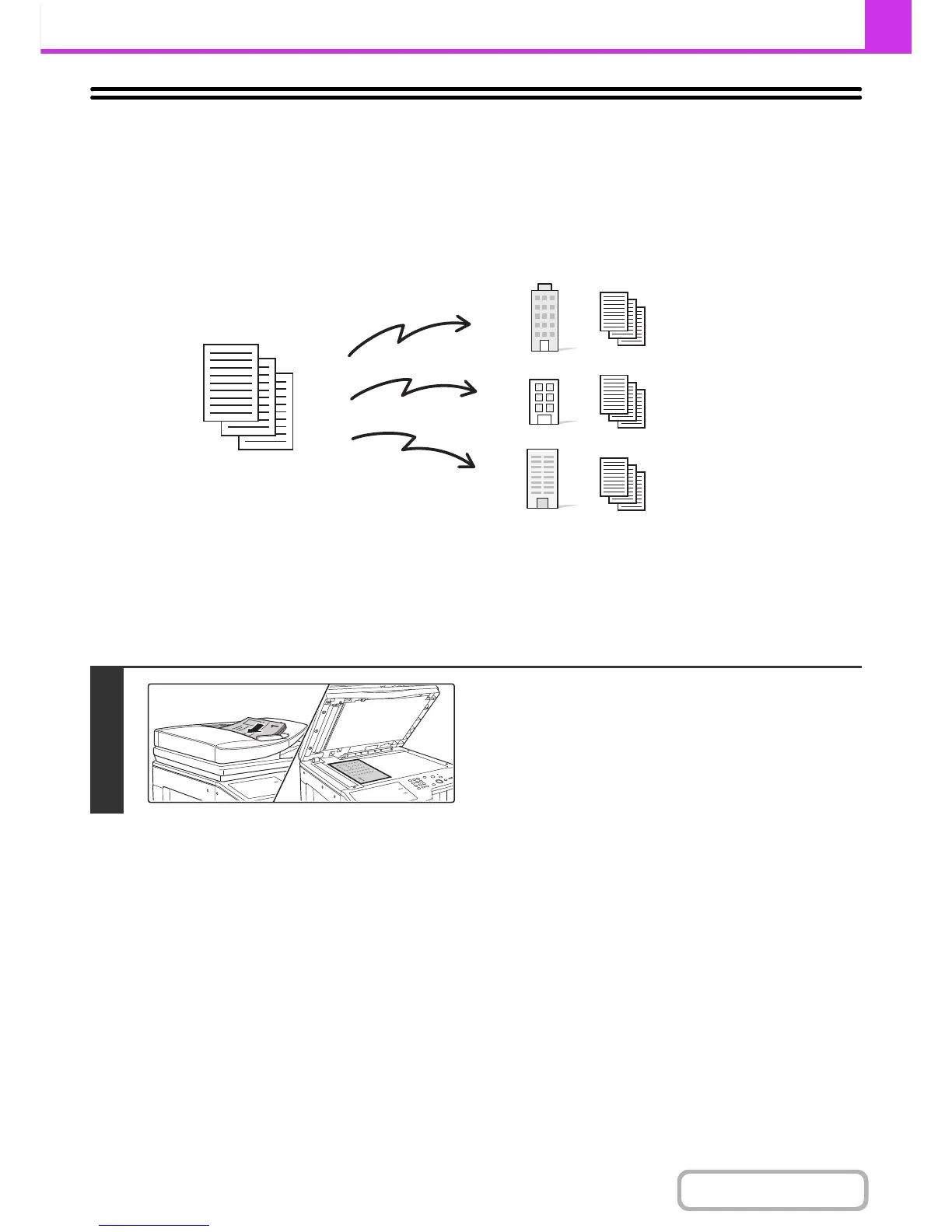 This function is convenient when you need to send the same fax to multiple destinations, such as sending a report to