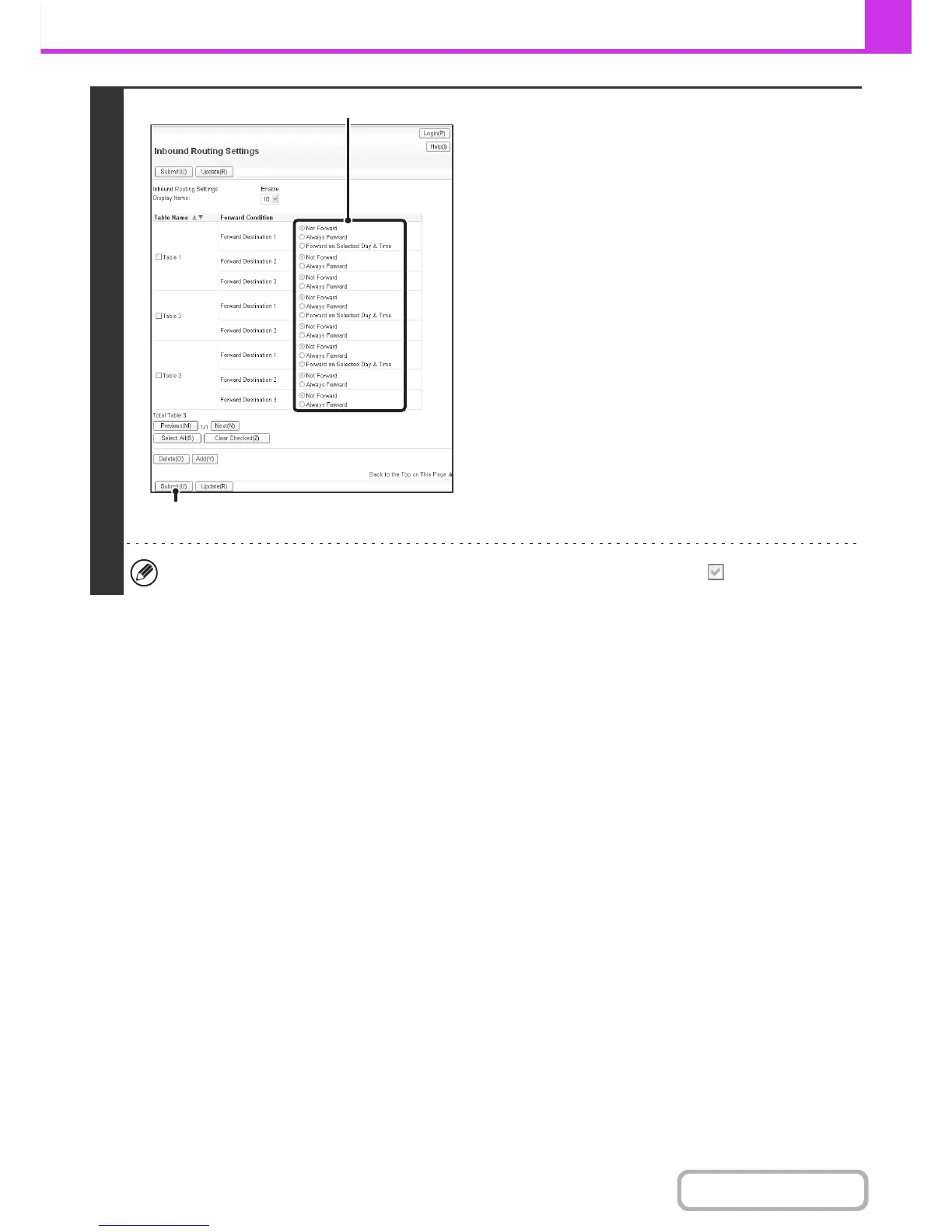 To delete a forwarding table, click the checkbox next to the table name so that it is selected and click [Delete].