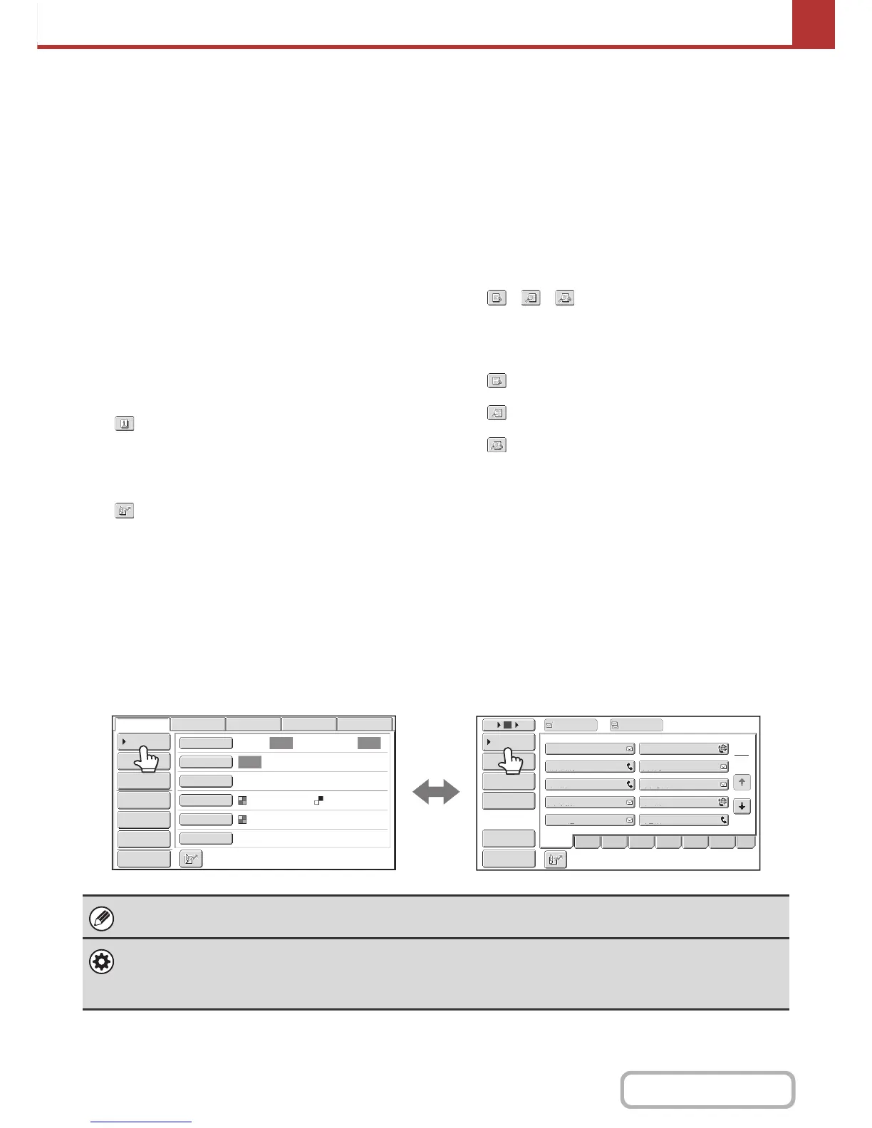 • Base screen of each mode (scan, Internet fax, fax, or data entry mode)