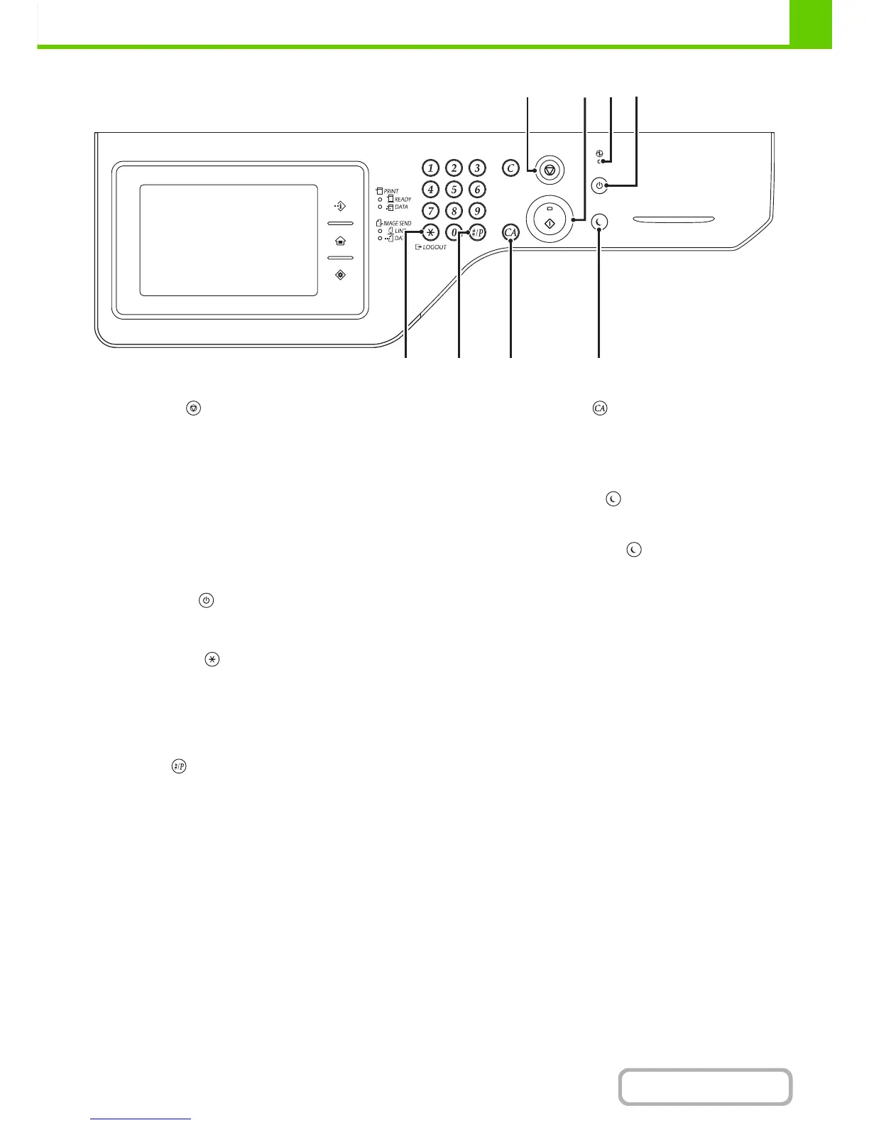 When using the copy function, press this key to use a job