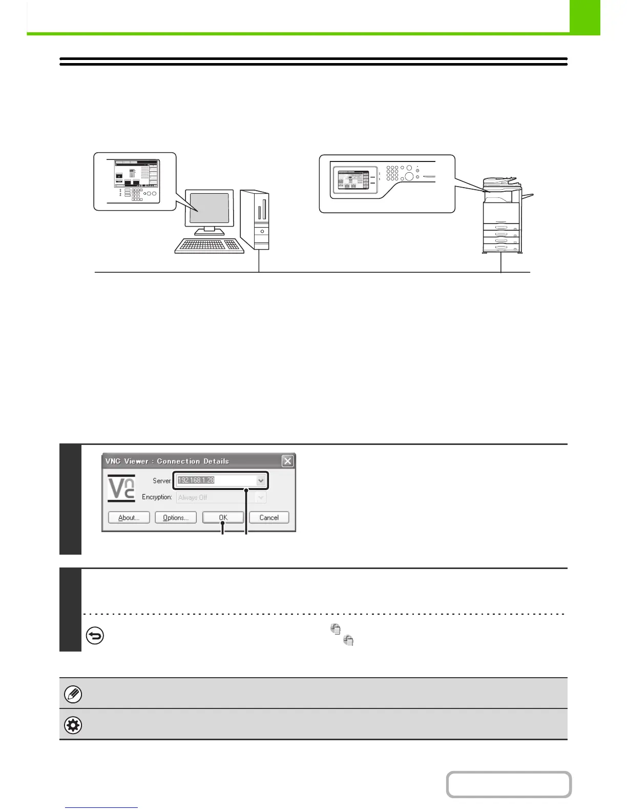 To use the remote operation function, the machine must be connected to a network and a VNC application must be