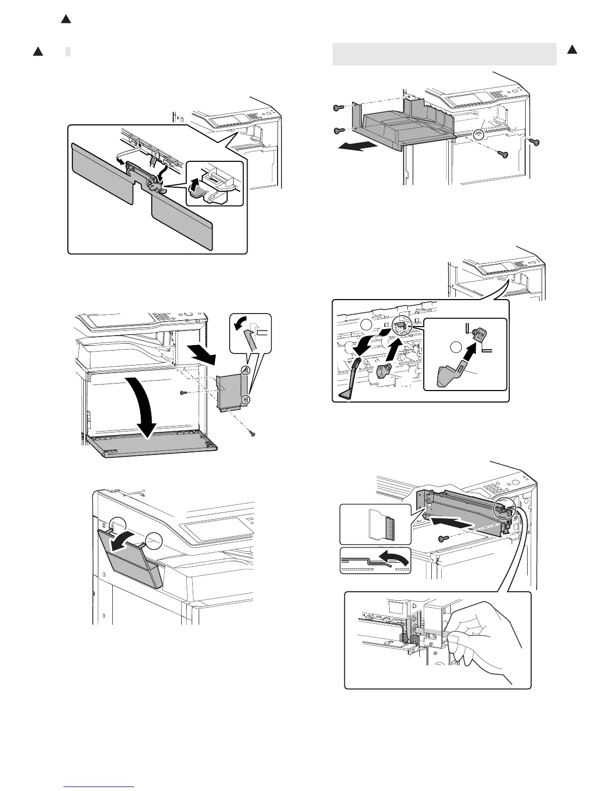 2) Disengage the pawls, and remove the paper exit tray cover.