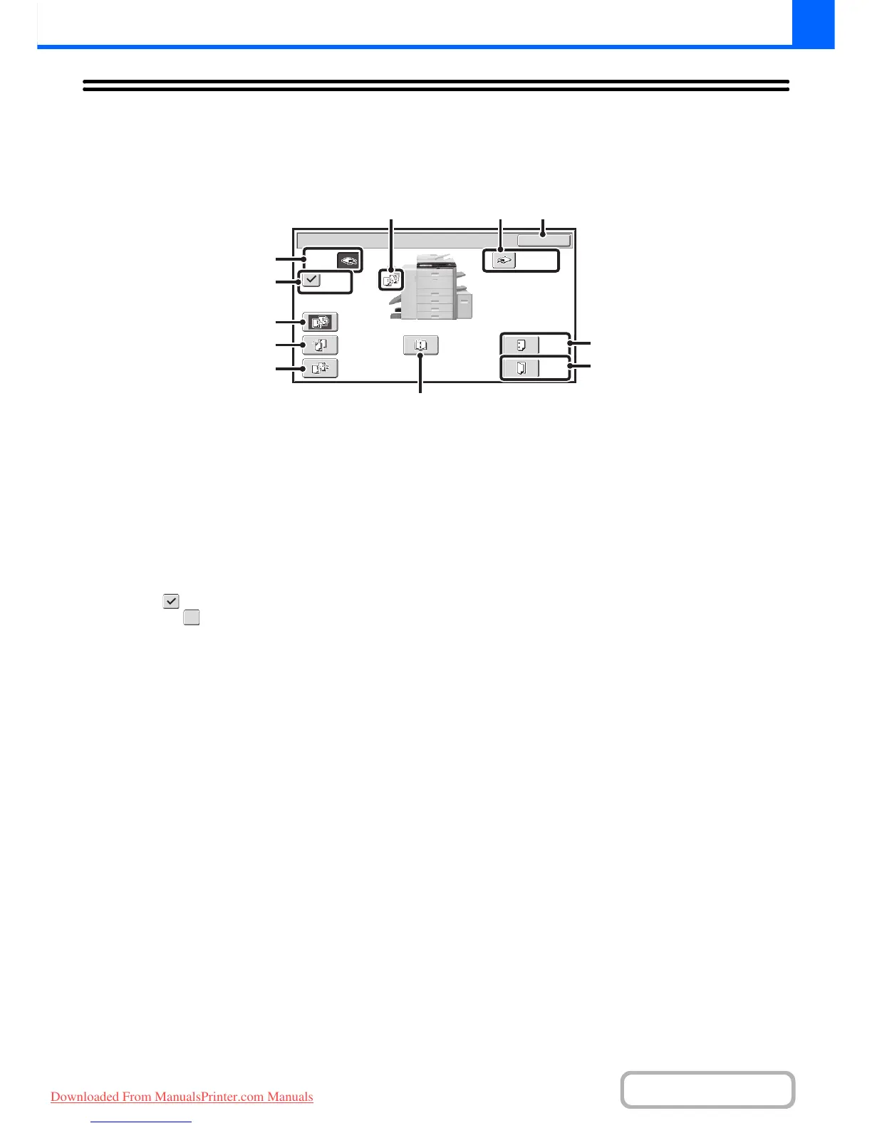 that can be selected are sort, group, offset, staple sort, saddle stitch, and punch. All explanations of the settings below