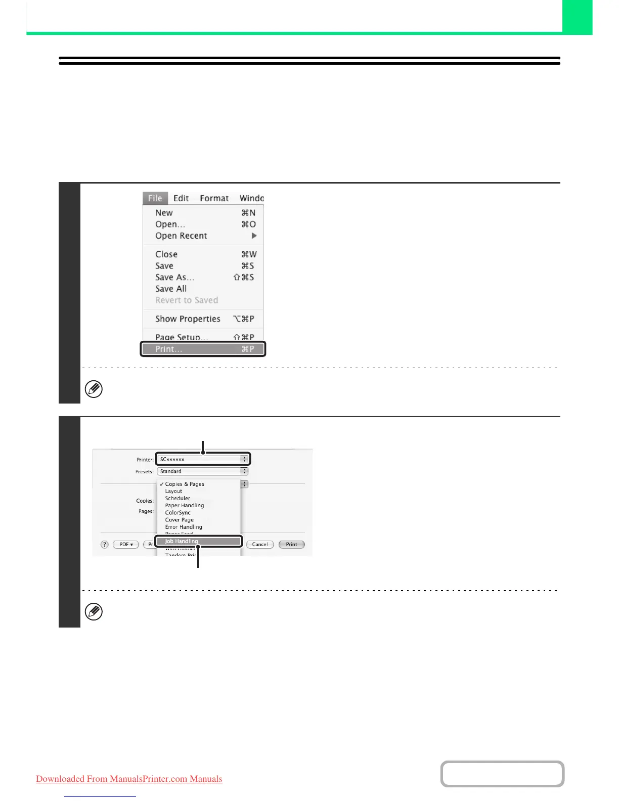• In Mac OS X v10.5 to 10.5.5, select [Job Handling]