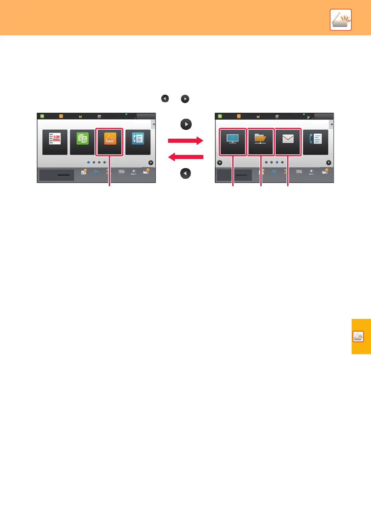 In the home screen, tap the icon of the desired scanner mode to display the base screen of scanner mode.