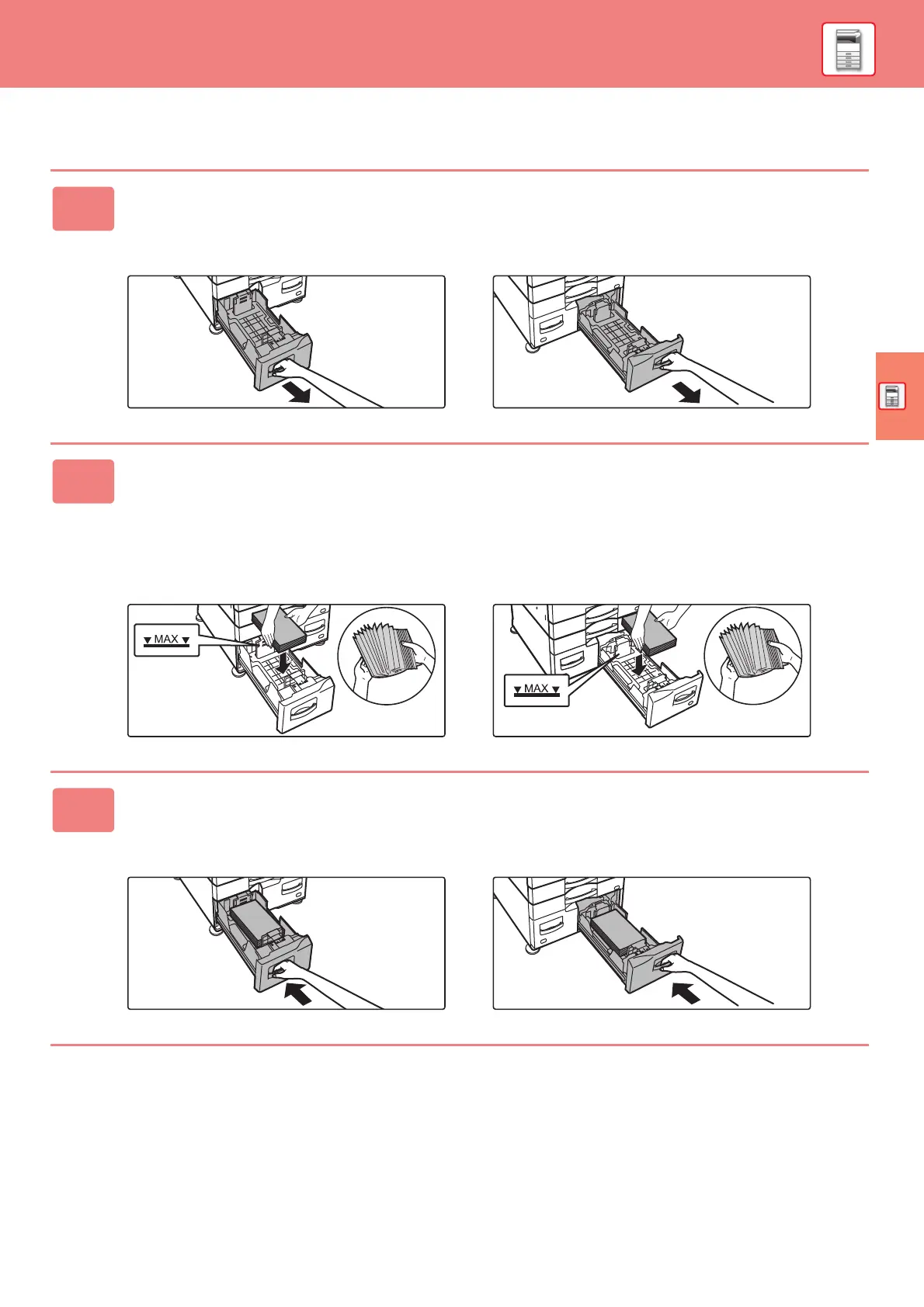 sheets for tray 3, or maximum of 900 sheets for tray 4). The paper must not exceed the maximum number of sheets and