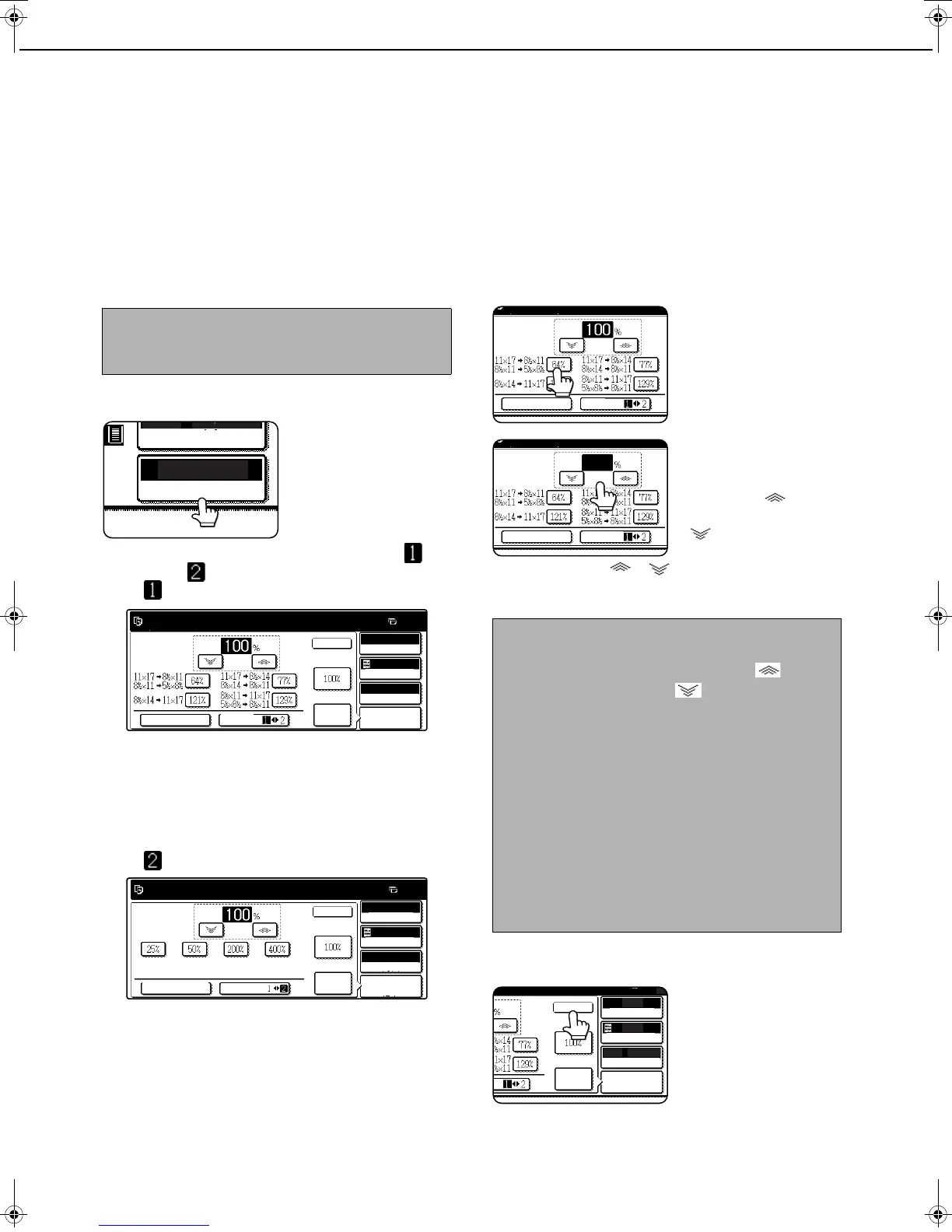 Five preset enlargement and five preset reduction copy ratios (max. 400%, min. 25%) can be selected. In addition,