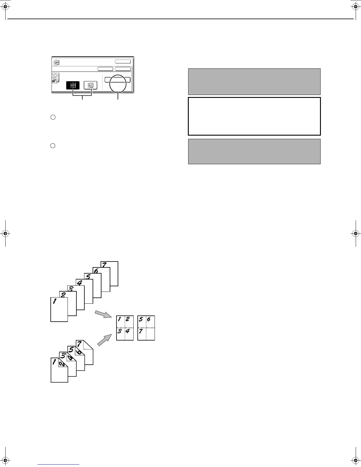 original pages onto one sheet, or 4in1 to copy four original pages onto one sheet. This function is convenient when