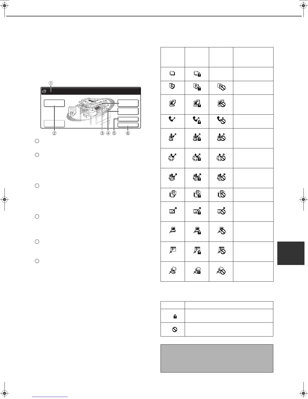 shows the copy mode screen, image send mode, or the
