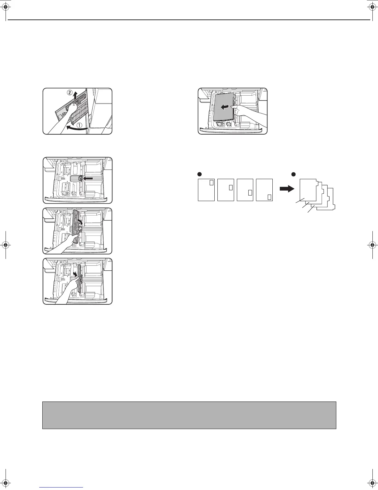 When using tabbed paper, follow the steps below to attach the special guide to the divider plate at the bottom